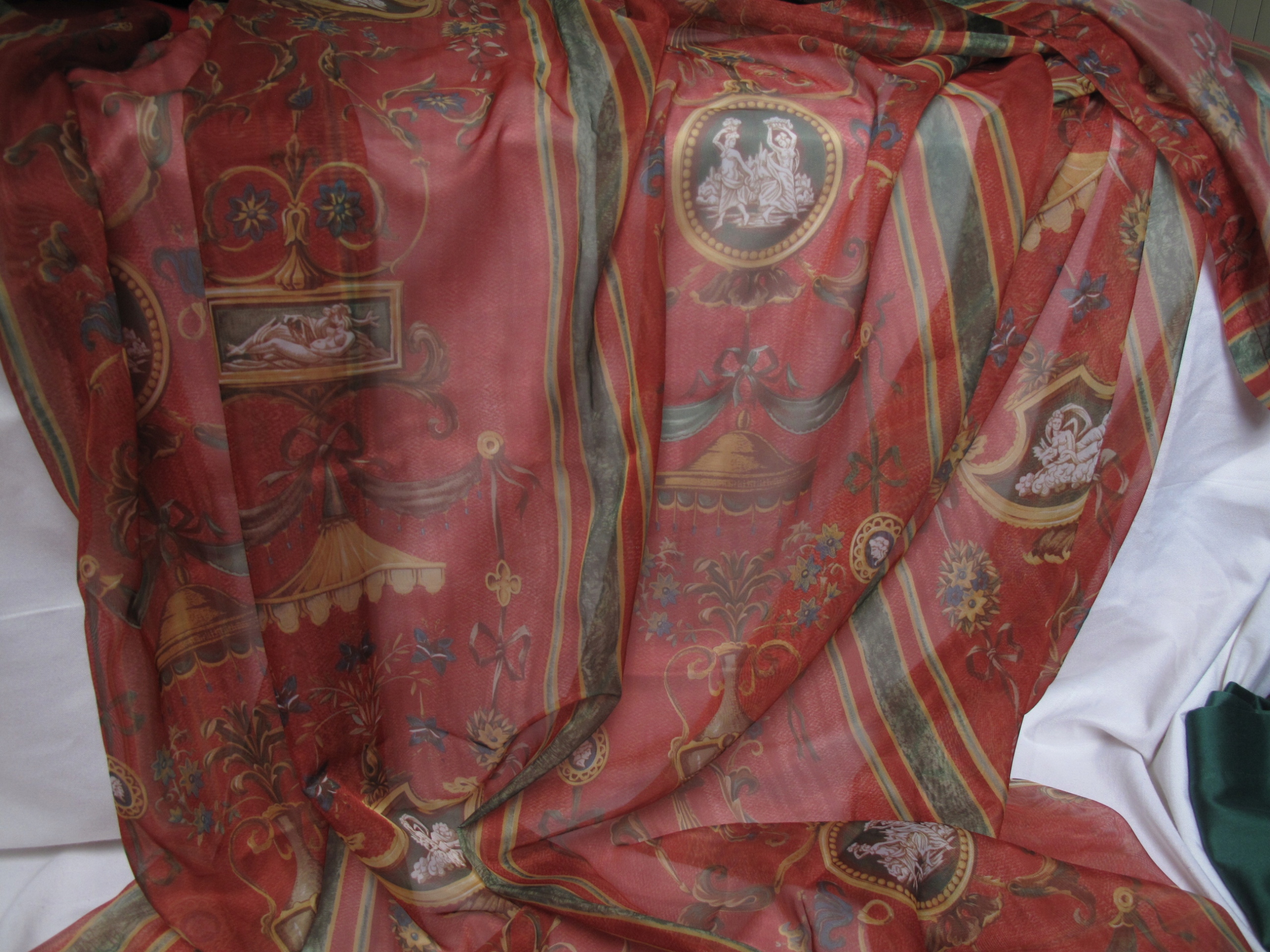 Тканини на моїх аукціонах зазвичай не мають бірок або підписів /якщо є, я завжди їх пред'являю/, я керуюся лише своєю думкою, я можу помилятися в оцінці матеріалу /справжнього чи штучного/ . Є 6 штор, їх висота 184 см на ширину 152 см. Тунелі на вершині. Штори з капронової тканини, трохи прозорі, з великим турецьким малюнком. Без недоліків.
