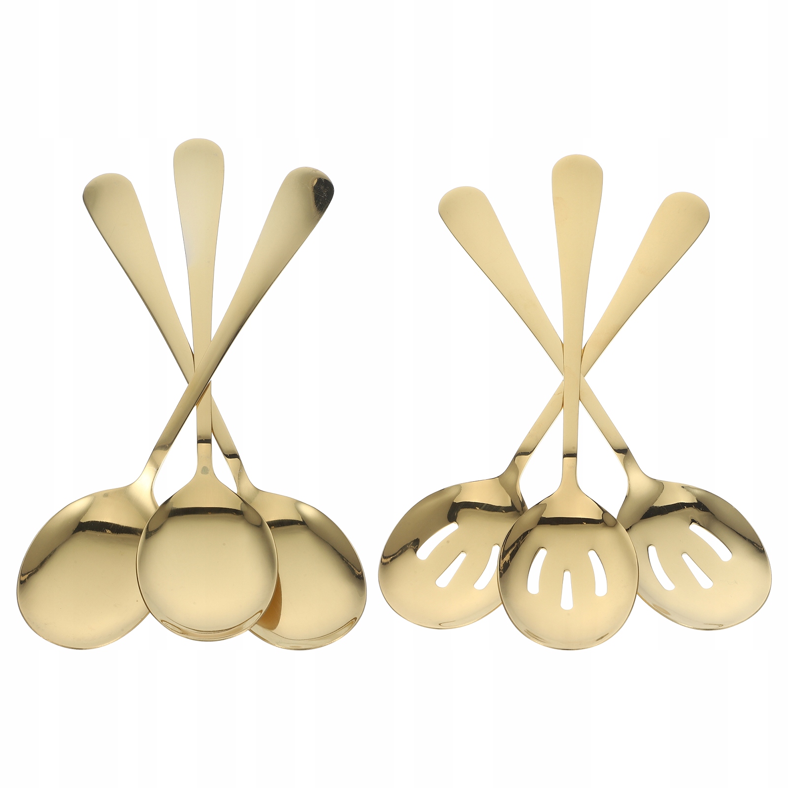 6 ШТ ЗОЛОТИХ СЕРВІРОВАЛЬНИХ ЛОЖОК З НЕРЖАВІЮЧОЇ СТАЛІ З ОТВОРАМИ