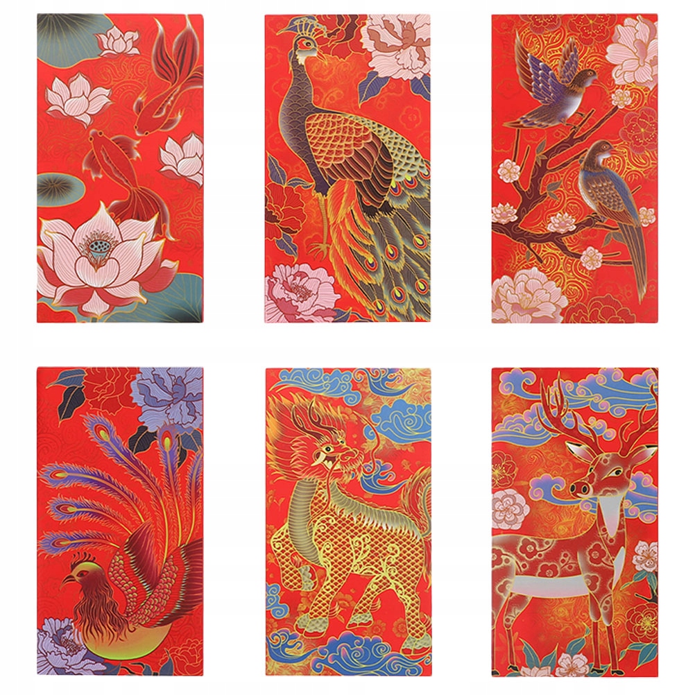 6 ШТ. ЧЕРВОНІ КОНВЕРТИ В КИТАЙСЬКОМУ СТИЛІ ПАПЕРОВІ ЧЕРВОНІ КОНВЕРТІ ПАКЕТКИ ДЛЯ ЗБЕРІГАННЯ ГРОШЕЙ