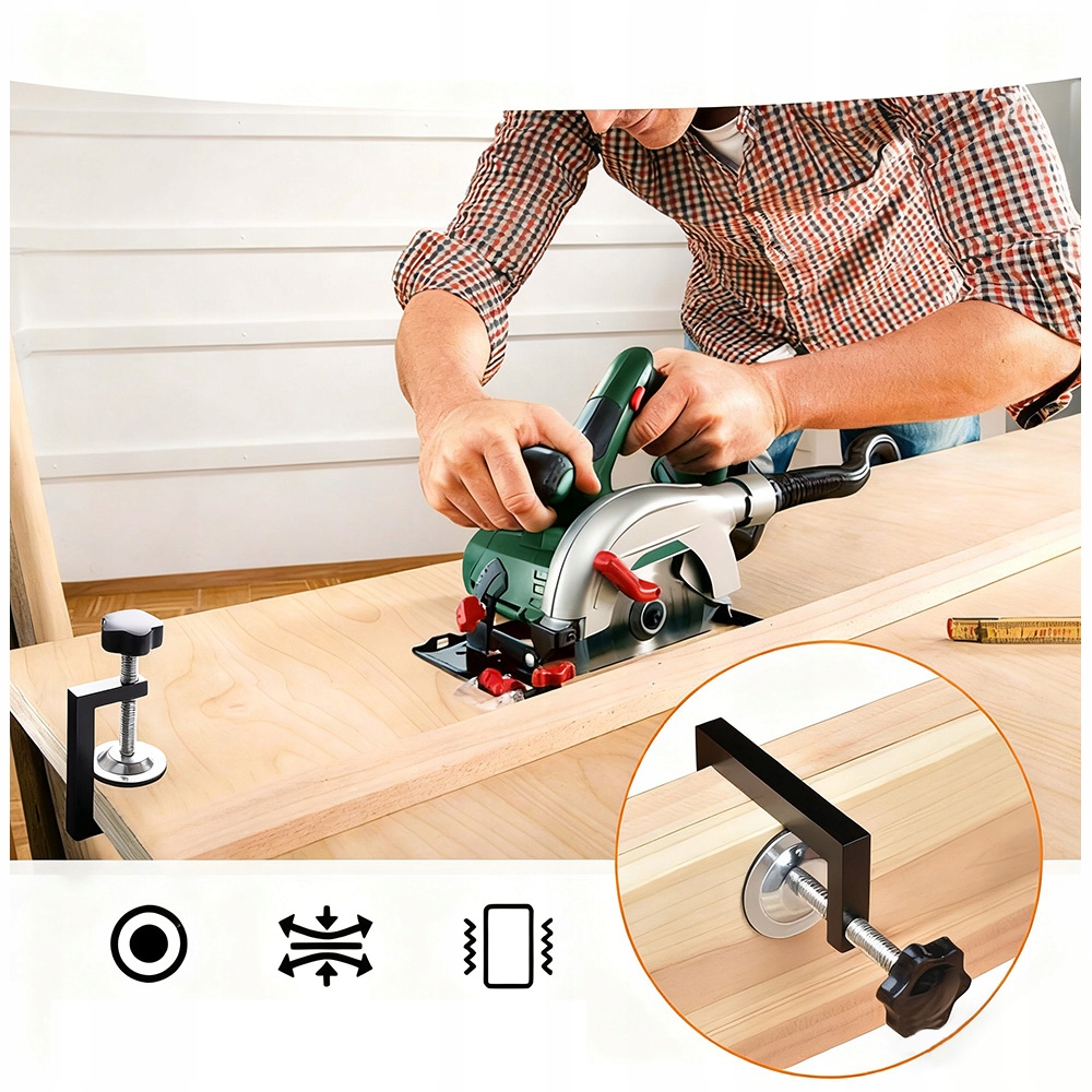 【Столярний затискач】 Міцний затискач запобігає деформації об’єкта, який затискається. Протиковзкі накладки на затискачі запобігають пошкодженню поверхні шафи під час збирання.