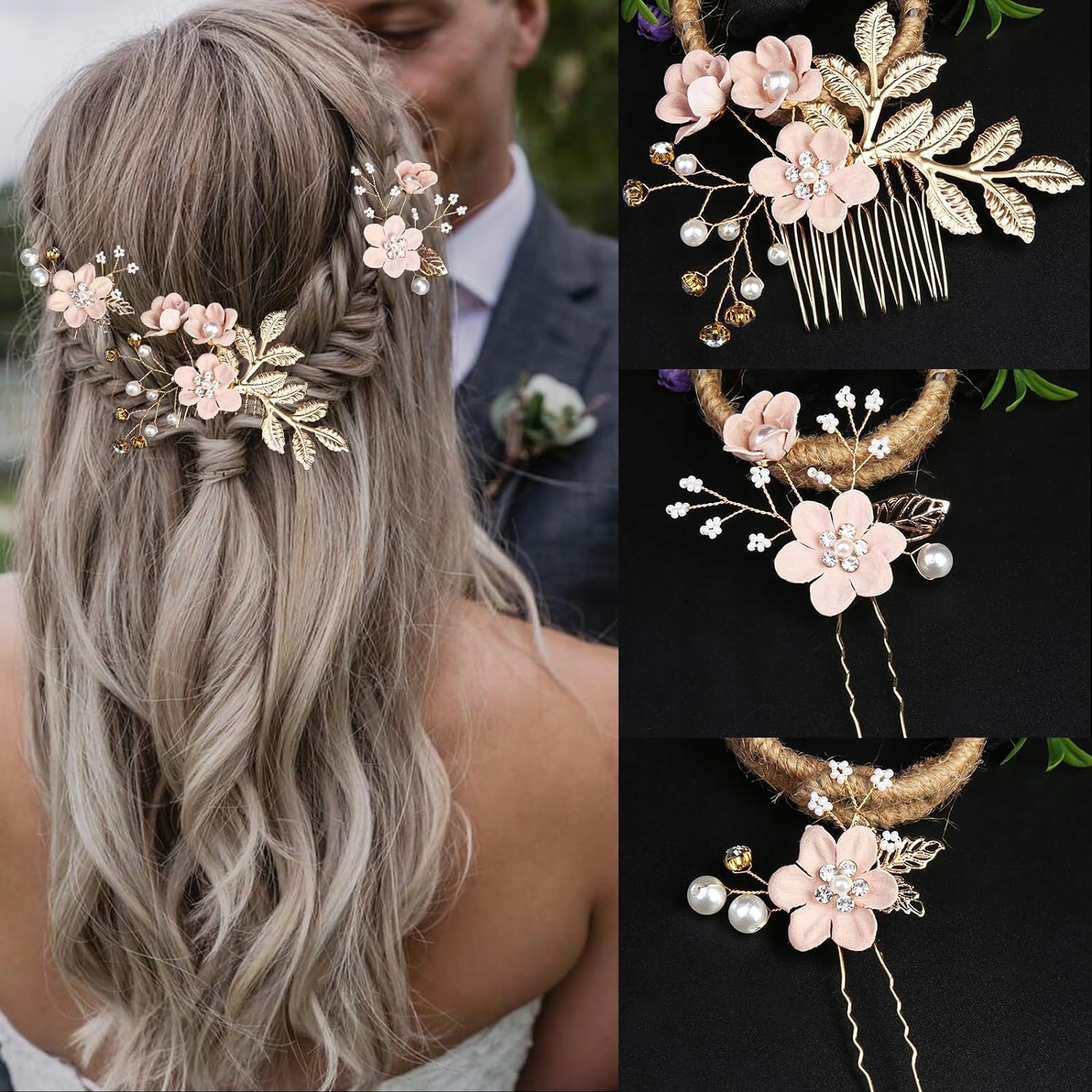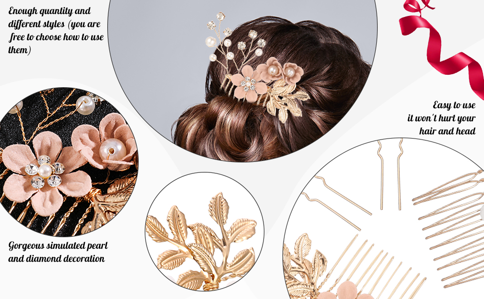 Ви отримаєте 6 аксесуарів для волосся на весільному рожевому золоті, ви можете поєднати або розділити їх відповідно до власних уподобань, щоб зробити вас красивішими. Прозорі кристалічні стрижні та гілки намистин.