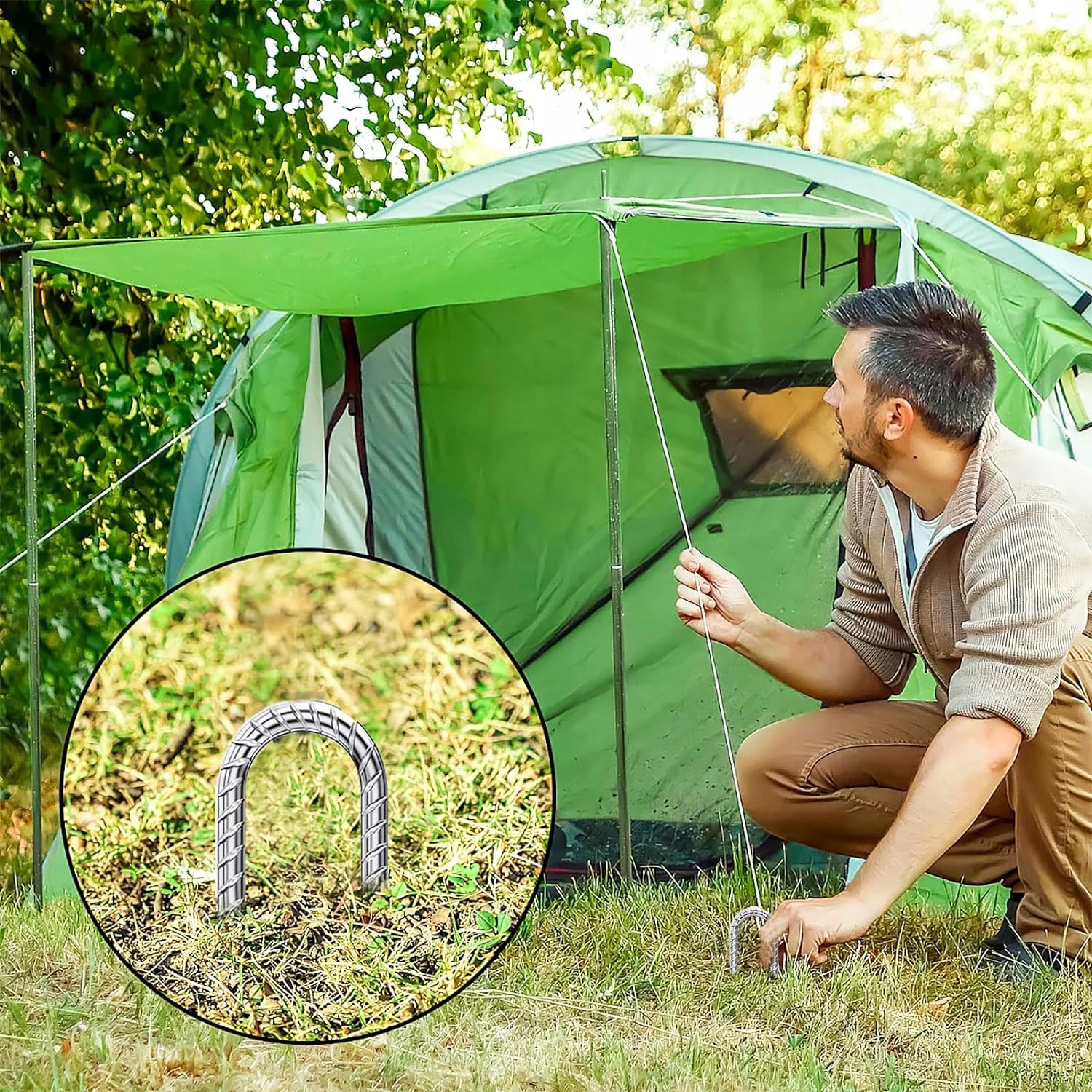 ⛺НАДЗВИЧАЙНО СТІЙКИЙ: тверді ґрунтові кілки виготовлені зі сталі, і завдяки загостреним нижнім краям їх можна легко вбивати в м’який і твердий ґрунт!