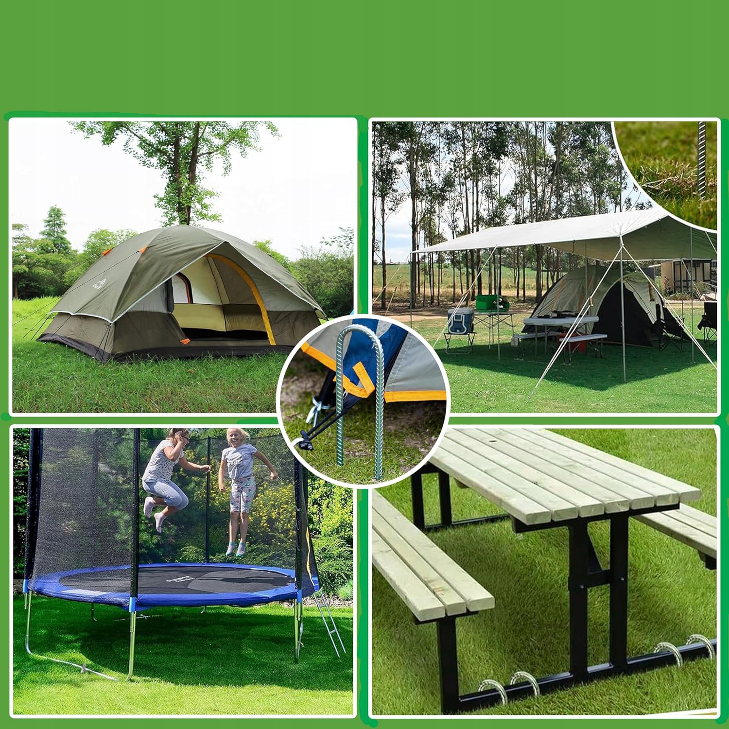 ⛺УНІВЕРСАЛЬНІСТЬ: Міцні наземні анкери ідеально підходять для кріплення батутів, наметів, павільйонів, надувних замків, навісів, захисних ширм, тентів та ігор!