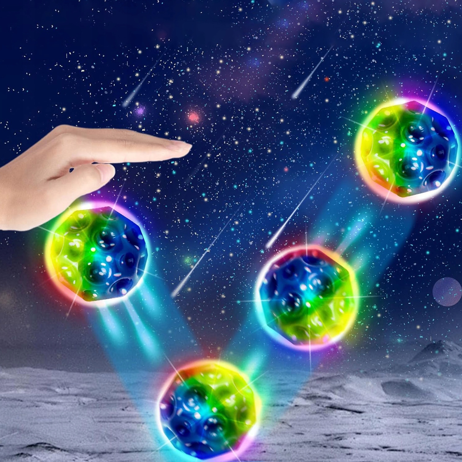 🌈👼【Космічний стрибучий м’яч】. Настрибучий м’яч розроблено з урахуванням планети та має нерівну стільникову поверхню для імітації планети. Барвиста поверхня, особливо око - ловить, і кожна пінопластова куля з місячним шаром має триколірний градієнт.