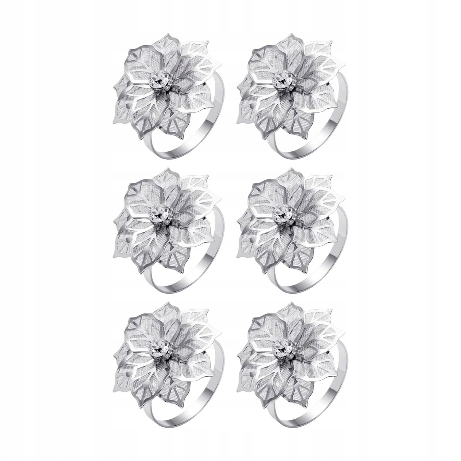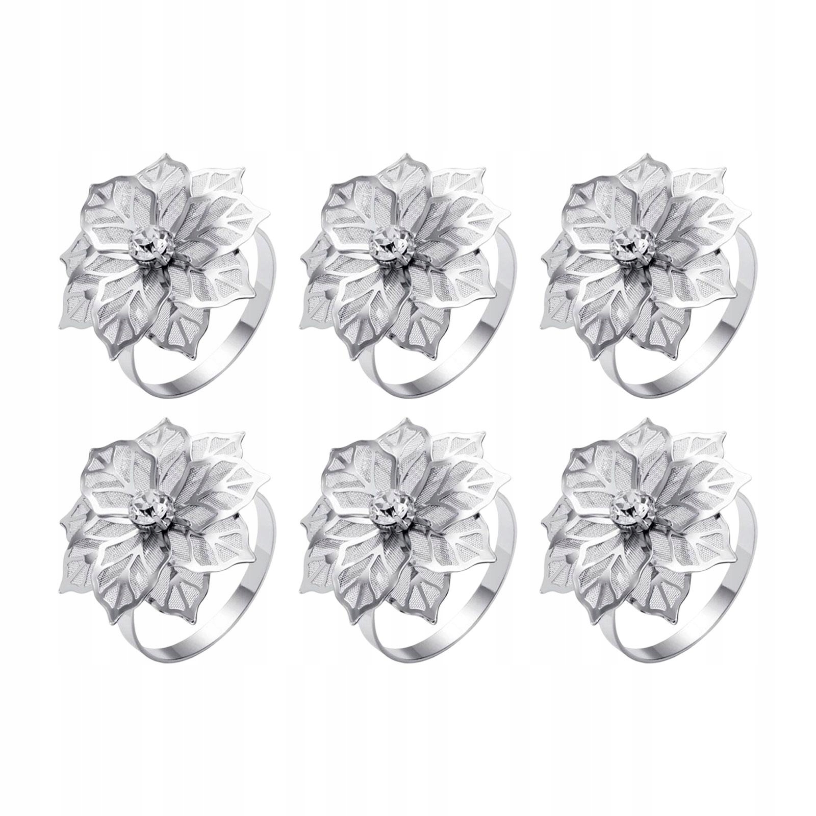 6 шт. Квіти з нержавіючої сталі, каблучки для серветок, прикраси, весільні серветки, сріблясті