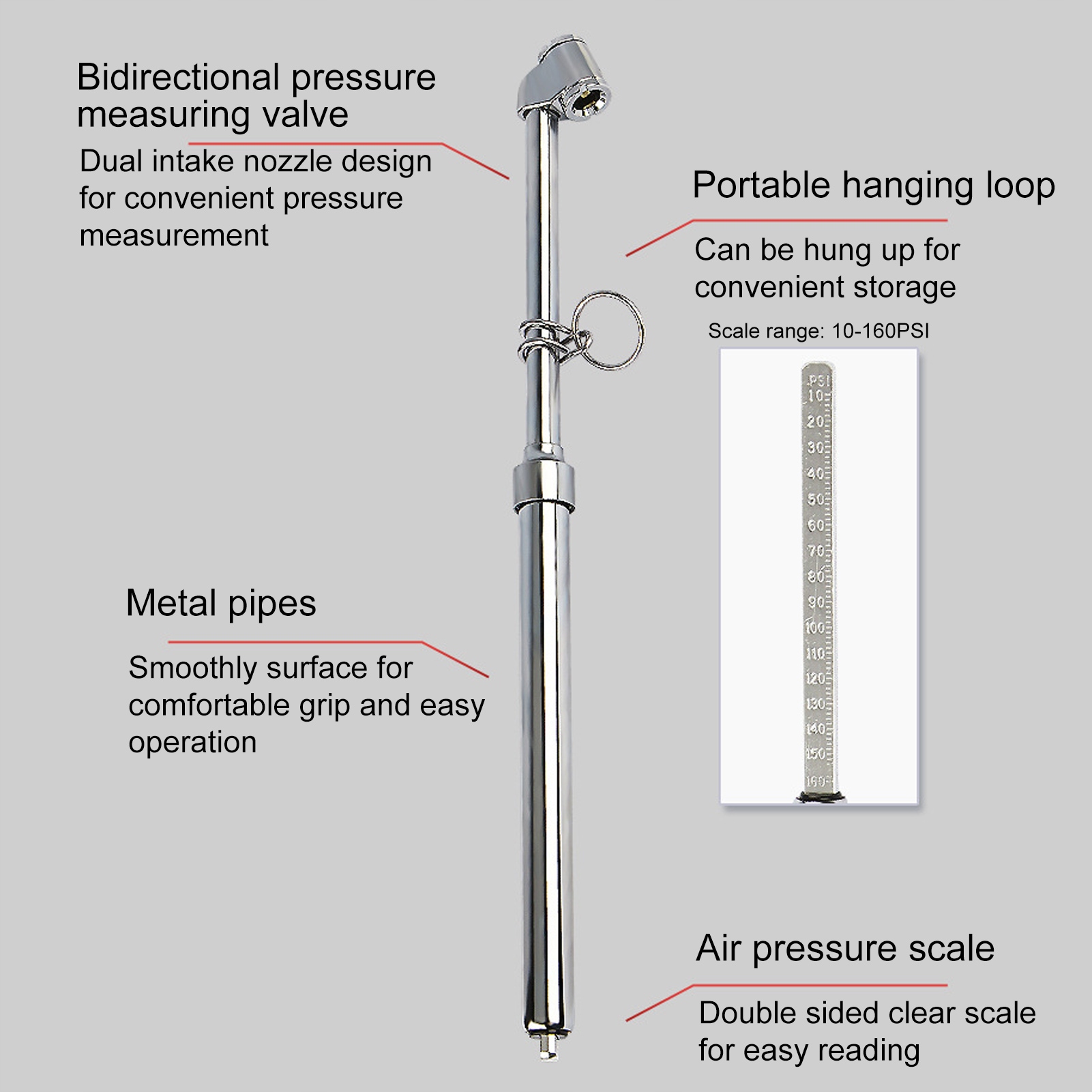 3. Точний і надійний: має подвійні білі шкали ABS з чіткими позначками, точні та надійні показання від 10 до 160 psi з обох сторін, ідеально підходить для вантажівок, легкових автомобілів, позашляховиків, фургонів, квадроциклів, мотоциклів або мотоциклів. Повинен бути попутник до вашого автомобіля.
