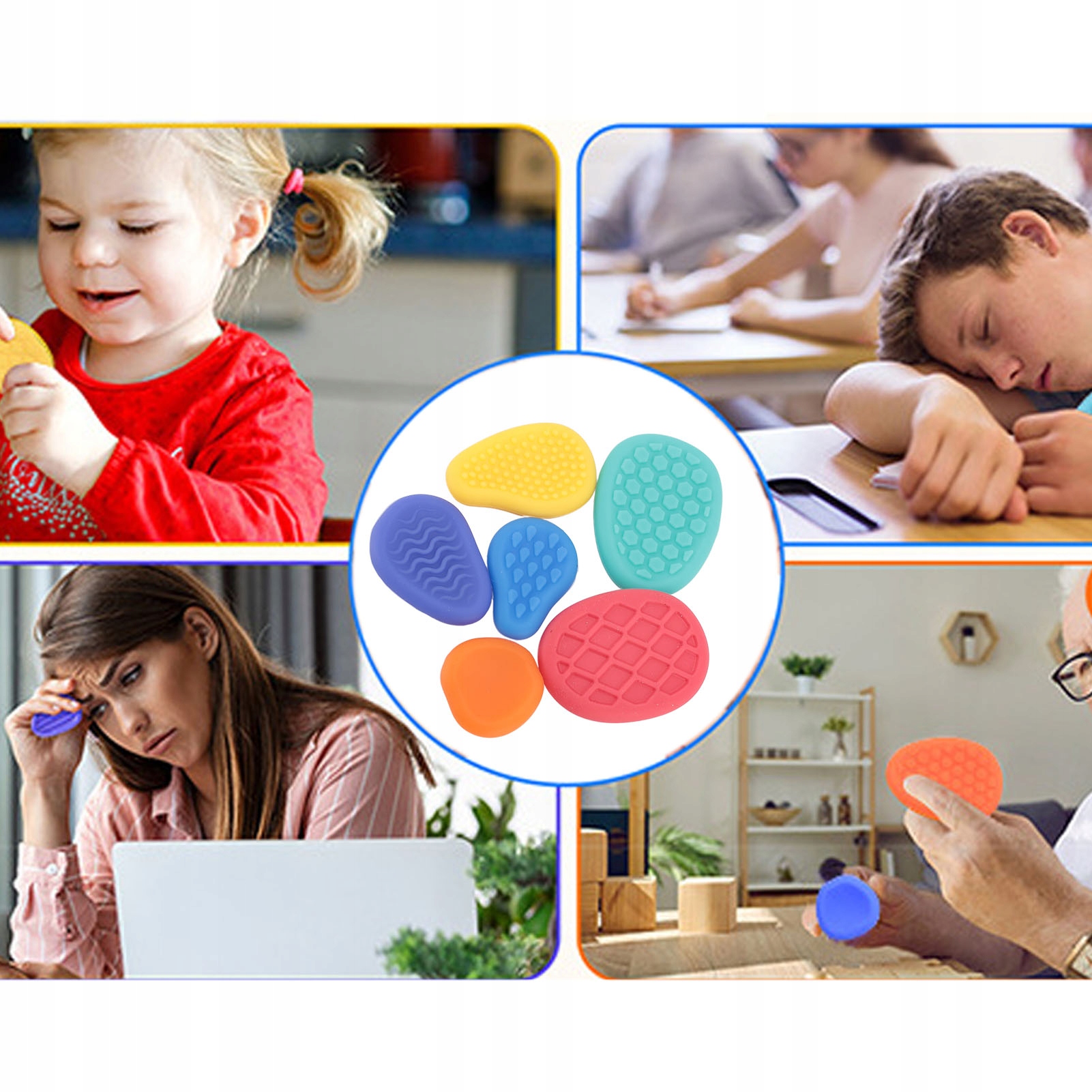 5. Преміум -матеріал: Виготовлений з силікону, сенсорні камені є твердими та безпечними для всіх вікових груп. Вони забезпечують сенсорний досвід, який сприяє фокусі, уваги та сенсорній інтеграції для людей різного віку.