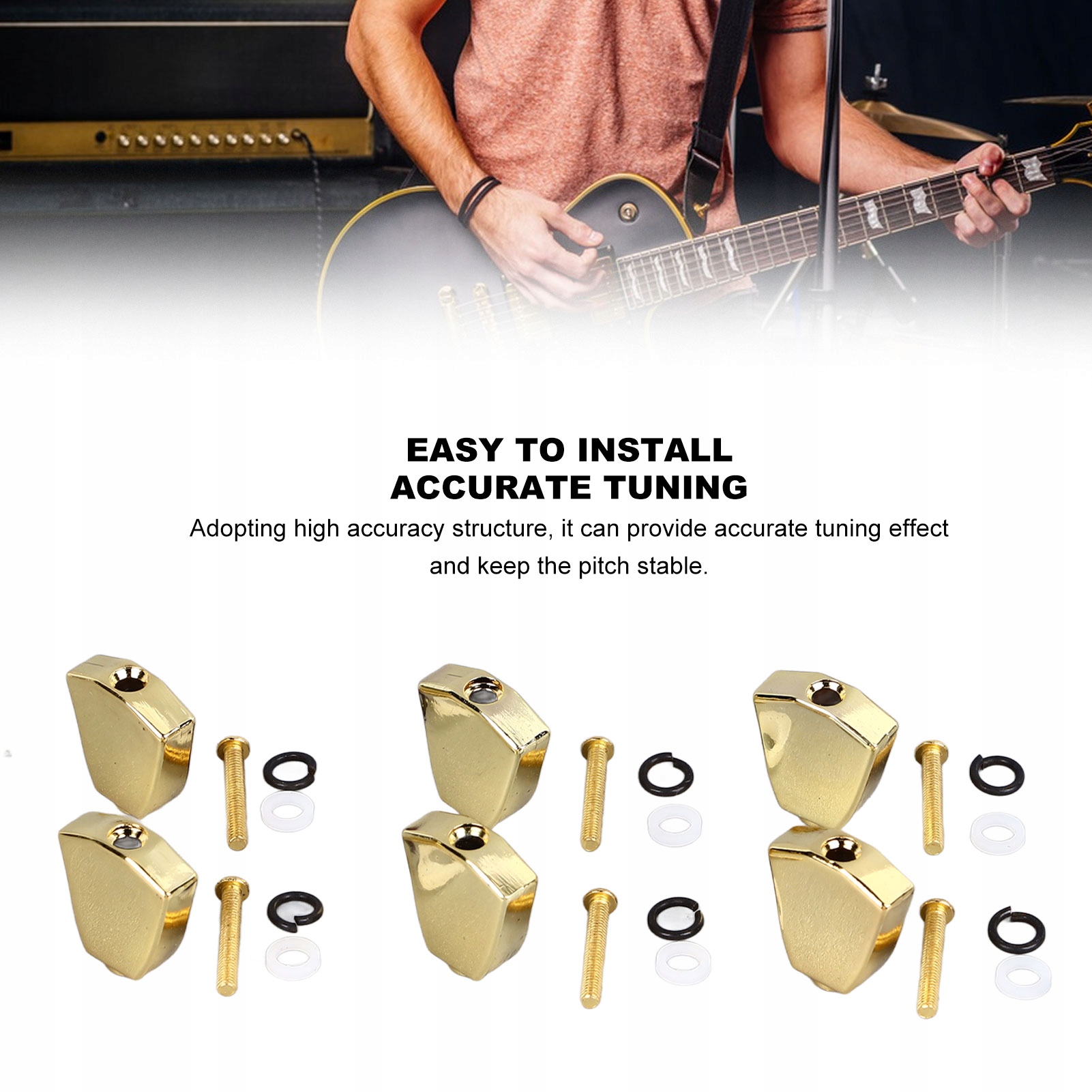6 шт. Тримач для гітарного тюнера. Ключ для налаштування. Кнопка. Головка. Металева кнопка для налаштування гітари, золота.