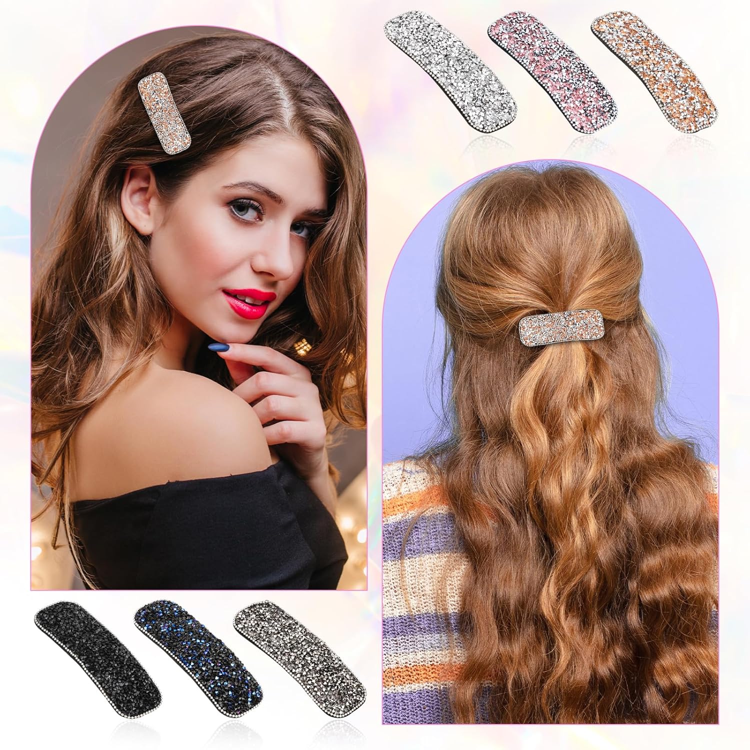 - Блискучий стиль: наші блискучі заколки для волосся прикрашені блискучими декоративними кристалами, які сяють на світлі чи сонячному світлі, виглядають модно й елегантно та виділятимуть вас у натовпі