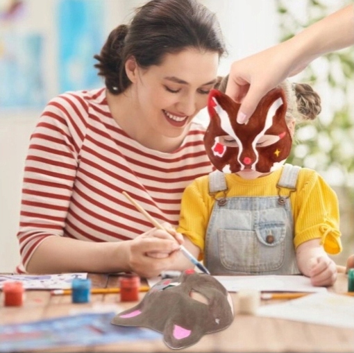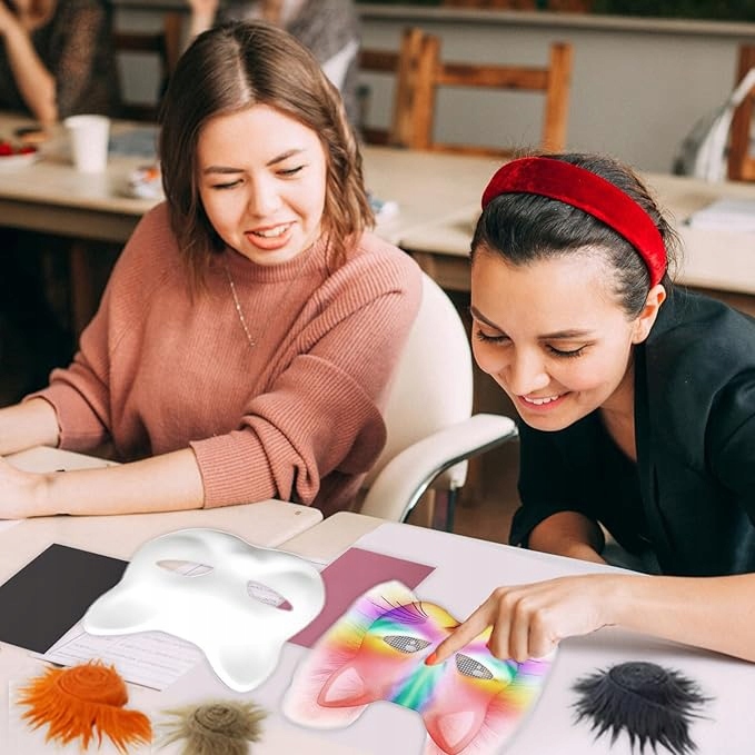 2️⃣ Розфарбуйте маску, приклейте аксесуари (наприклад, хутро, блискітки), зіставте кольори.