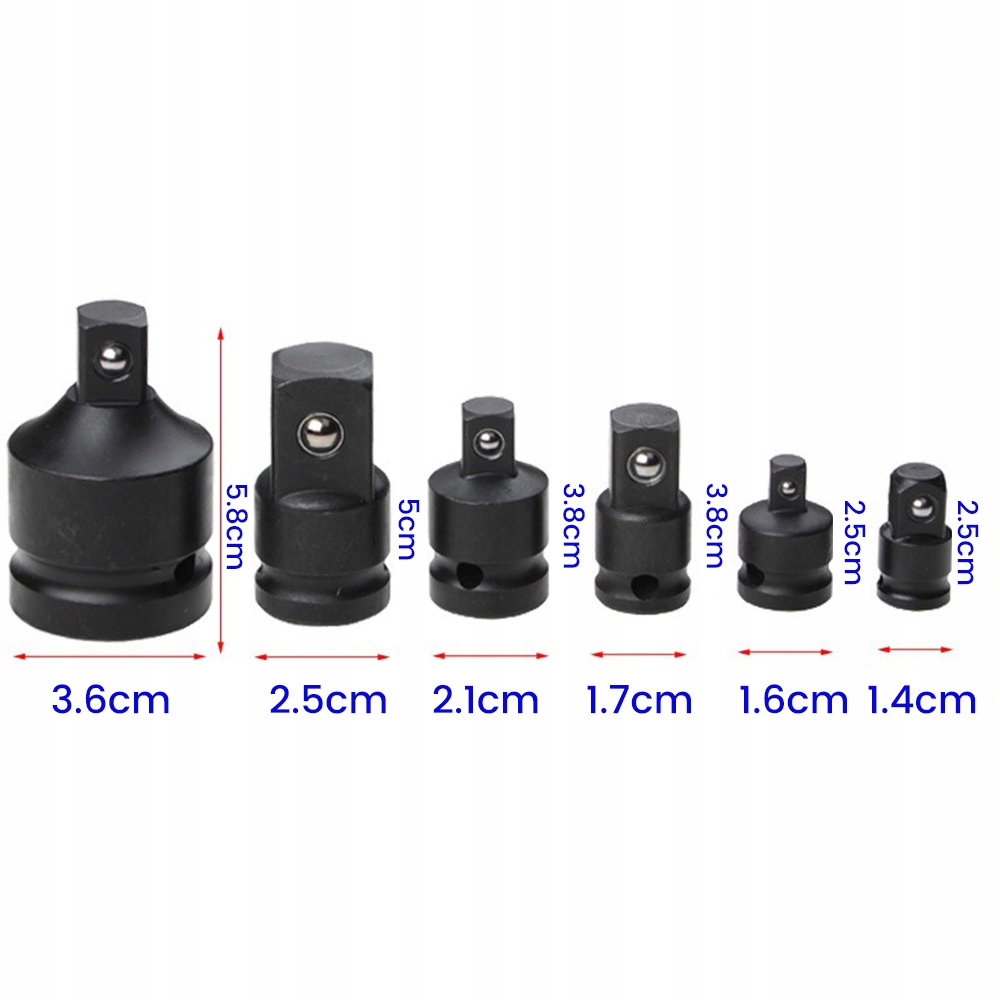 6 штук РЕДУКЦІЙНІ ПЕРЕХОДНИКИ IMPACT SOCKET 1/4 3/8 1/2 3/4 з фіксатором