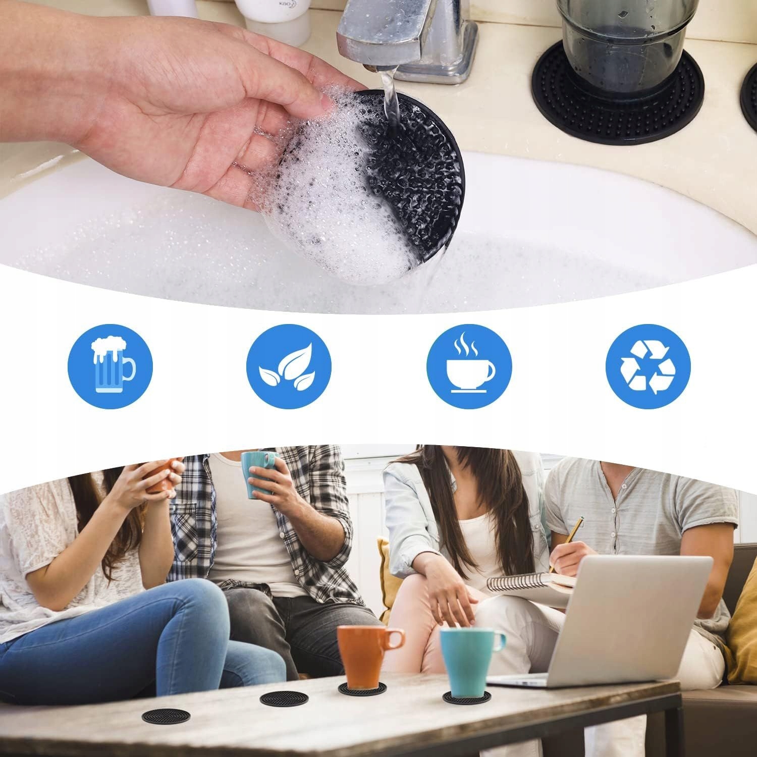 Двосторонній дизайн, доступний з обох сторін. Підставки для напоїв виготовлені з харчового силікону. Унікальний дизайн утримує рідину, щоб запобігти витокам і запобігти прилипанню подушечки до скляного посуду. З цими підставками скло залишатиметься на столі, оскільки дно нашого серветки розроблено зі спеціальною поверхнею з високим ковзанням, що забезпечує чудове зчеплення зі столом. Шикарні підставки під напої для захисту стільниці.