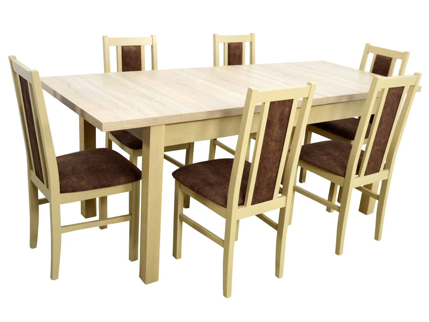 6 стільців і дерев'яний стіл розкладний стільниця ламінат