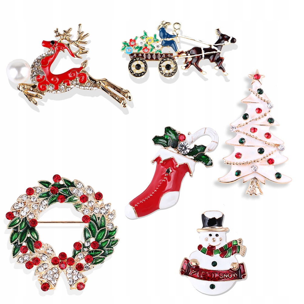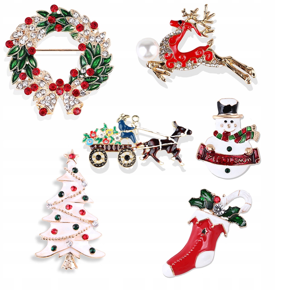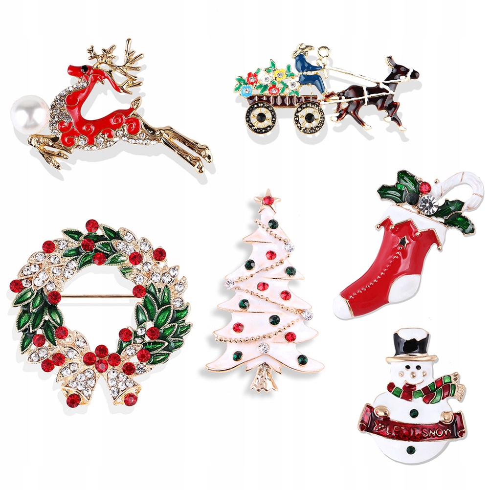 6 SZTUK NOWO ZAPROJEKTOWANYCH ŚWIĄTECZNYCH BROSZEK Z SERII CRYSTAL