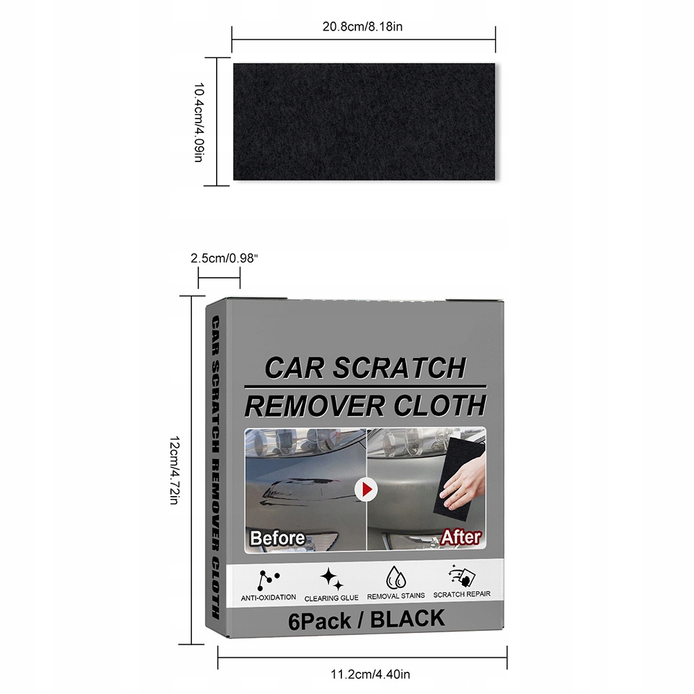 1、6-упаковка нанотканини для подряпин автомобіля: тканина Car Scratch Repair Cloth використовує вдосконалену технологію наноремонту для ефективного видалення дрібних подряпин і плям з вашого автомобіля, подряпин від цвяхів, подряпин від гілок дерев, піску та інших подряпин, допомагаючи відновити колір вашого автомобіля та захистити пофарбовані поверхні.