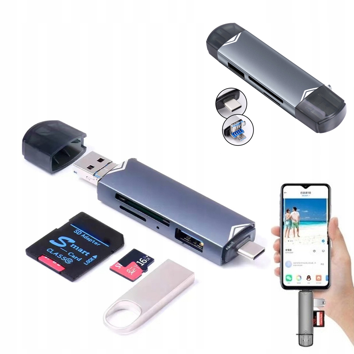 6-в-1 АДАПТЕР КАРТРИДЕР USB 3.0 USB-C SD microSD SDHC TF PLUG&PLAY СІРИЙ