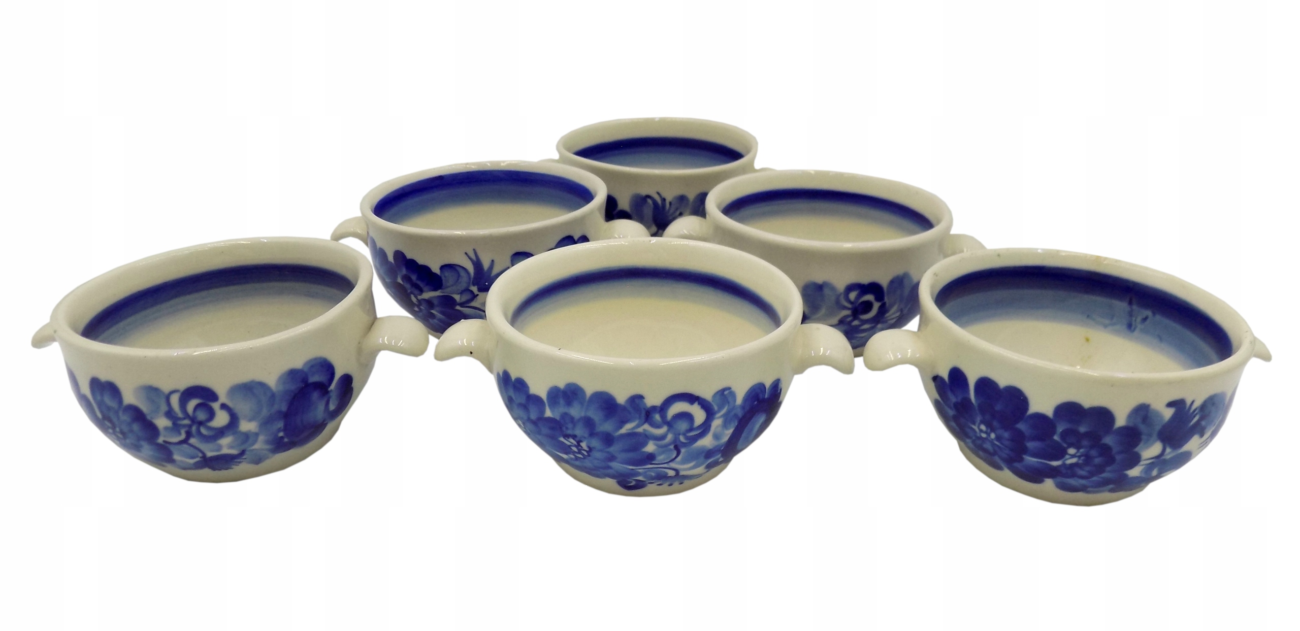 6 фаянсових мисок із ручками з Влоцлавека 1970-1980-х років. Підписано. Ручний розпис Mielcarek. Розміри; висота 6 х 15,5 х 11 см. Стан товару та схема фарбування на фото.