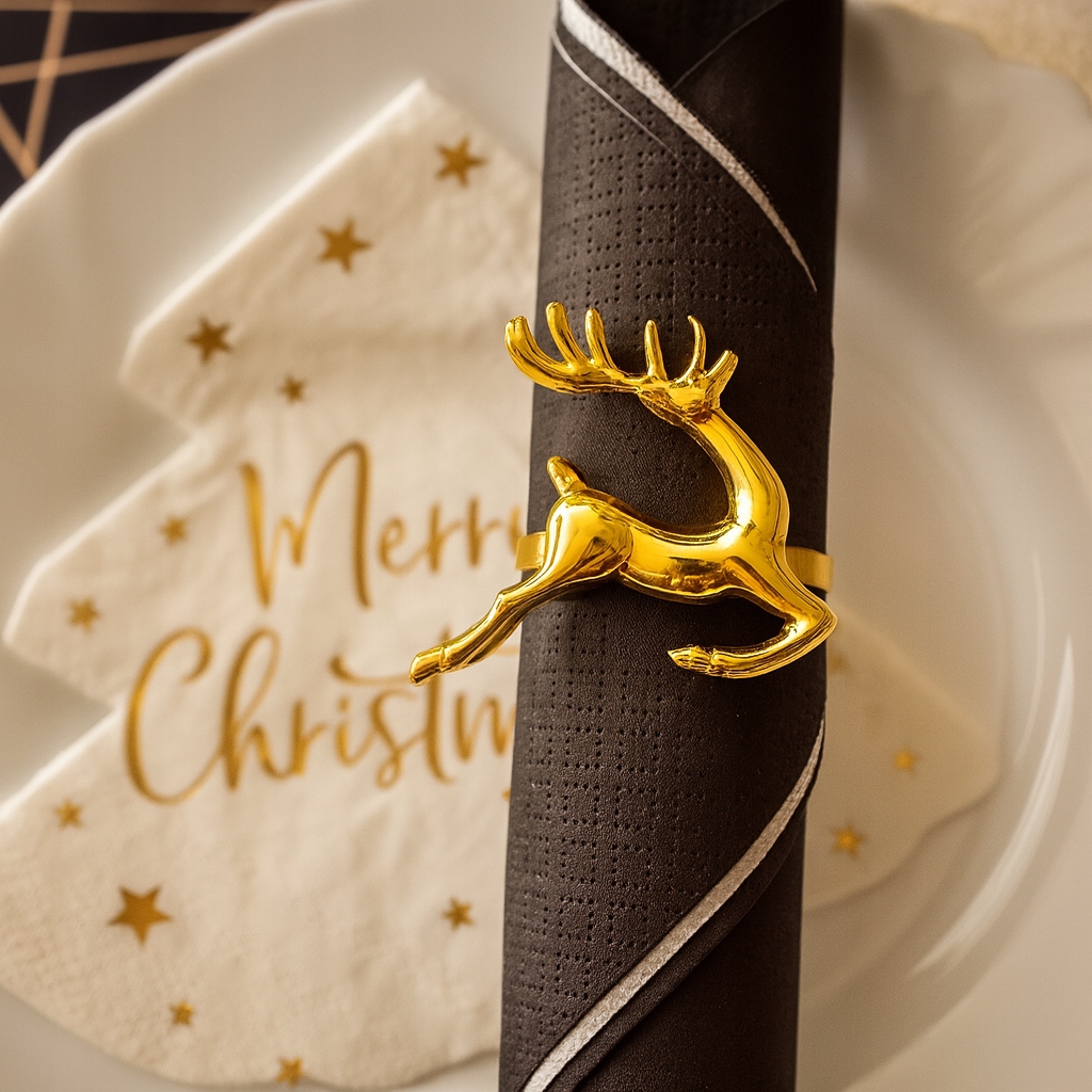 6 x РІЗДВЯНЕ КІЛЬЦЕ ДЛЯ СЕРВЕТОК ЗОЛОТИЙ ОЛЕНЬ ПРИКРАСА СТОЛУ