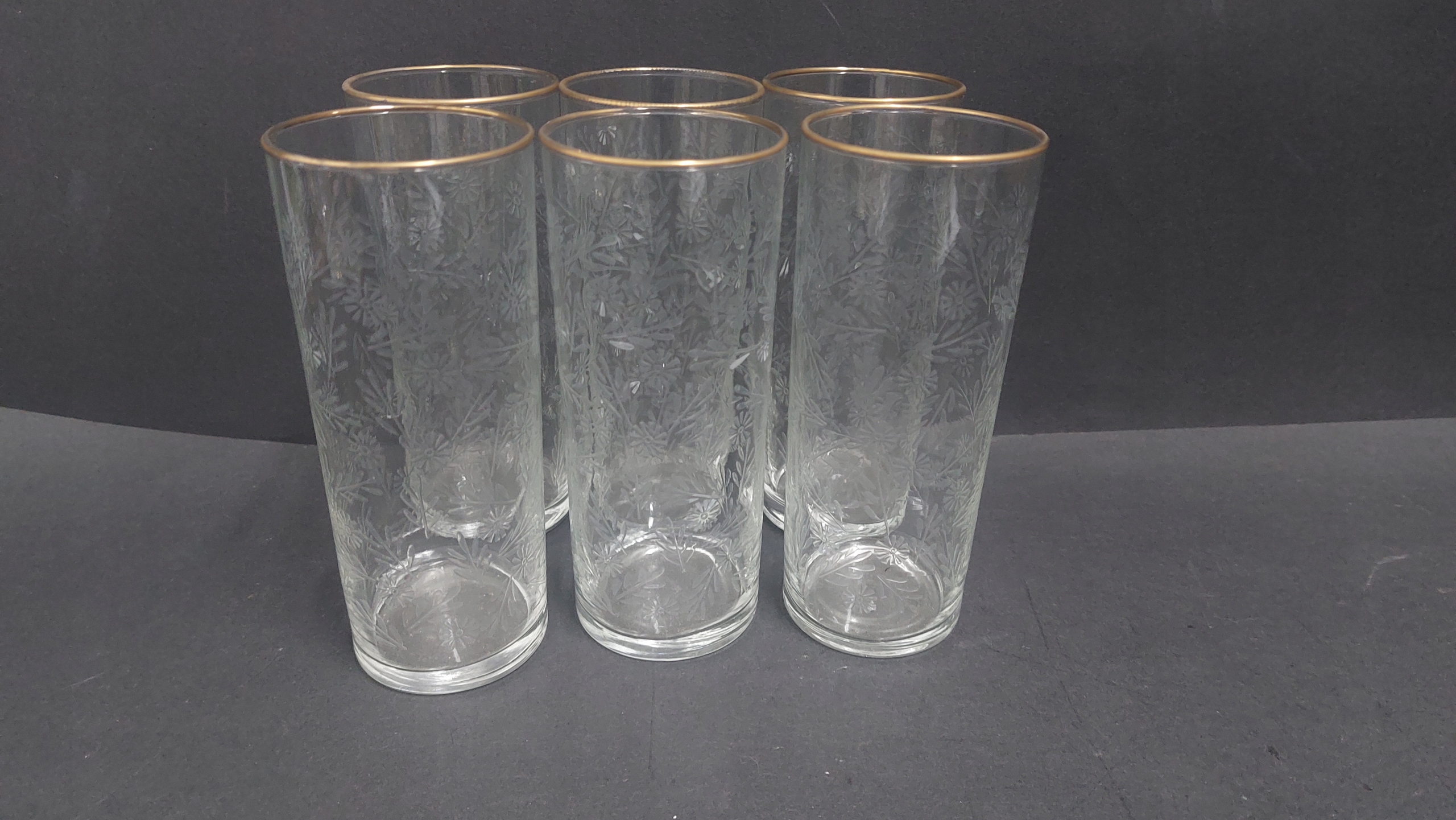 Набір чарівних старовинних келихів з квітковим візерунком на все скло, малюнок відчувається під пальцем, злегка позолочений у верхній частині вони виглядають красиво.