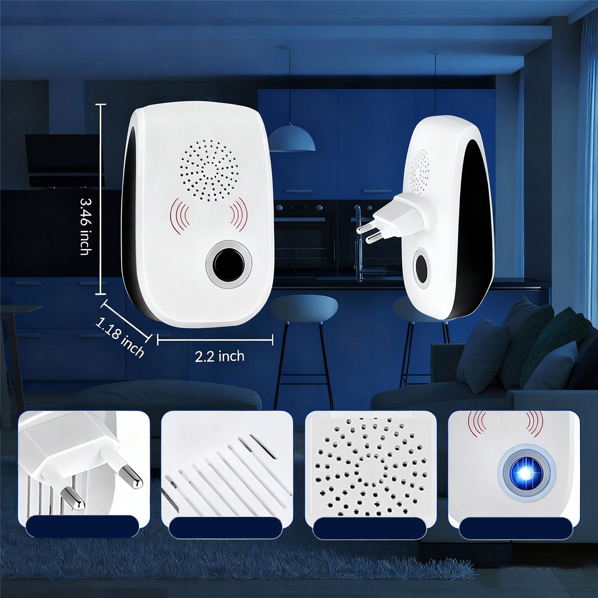 Просто підключіть ультразвуковий відлякувач гризунів до електричної розетки, і він автоматично активується. Рекомендується встановлювати пристрій на висоті від 20,3 до 68 сантиметрів над землею. д.