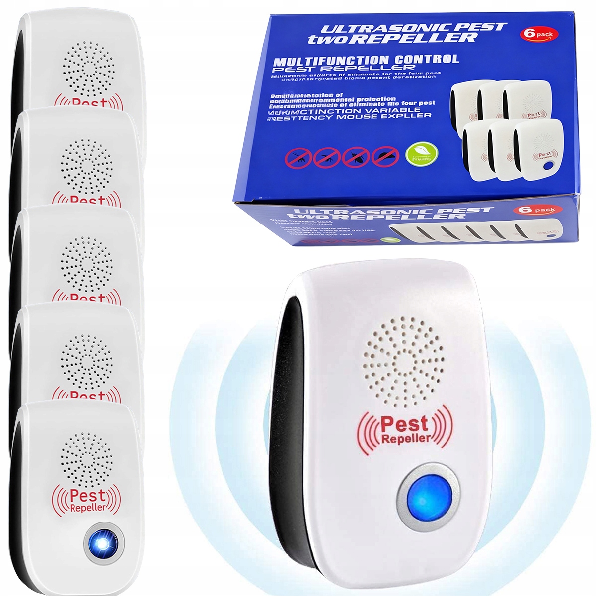Набір із 6 ультразвукових відлякувачів шкідників, вдосконалений ультразвуковий відлякувач мишей, електронний відлякувач комах, відлякувач шкідників від мишей, комарів, тарганів, павуків, мух
