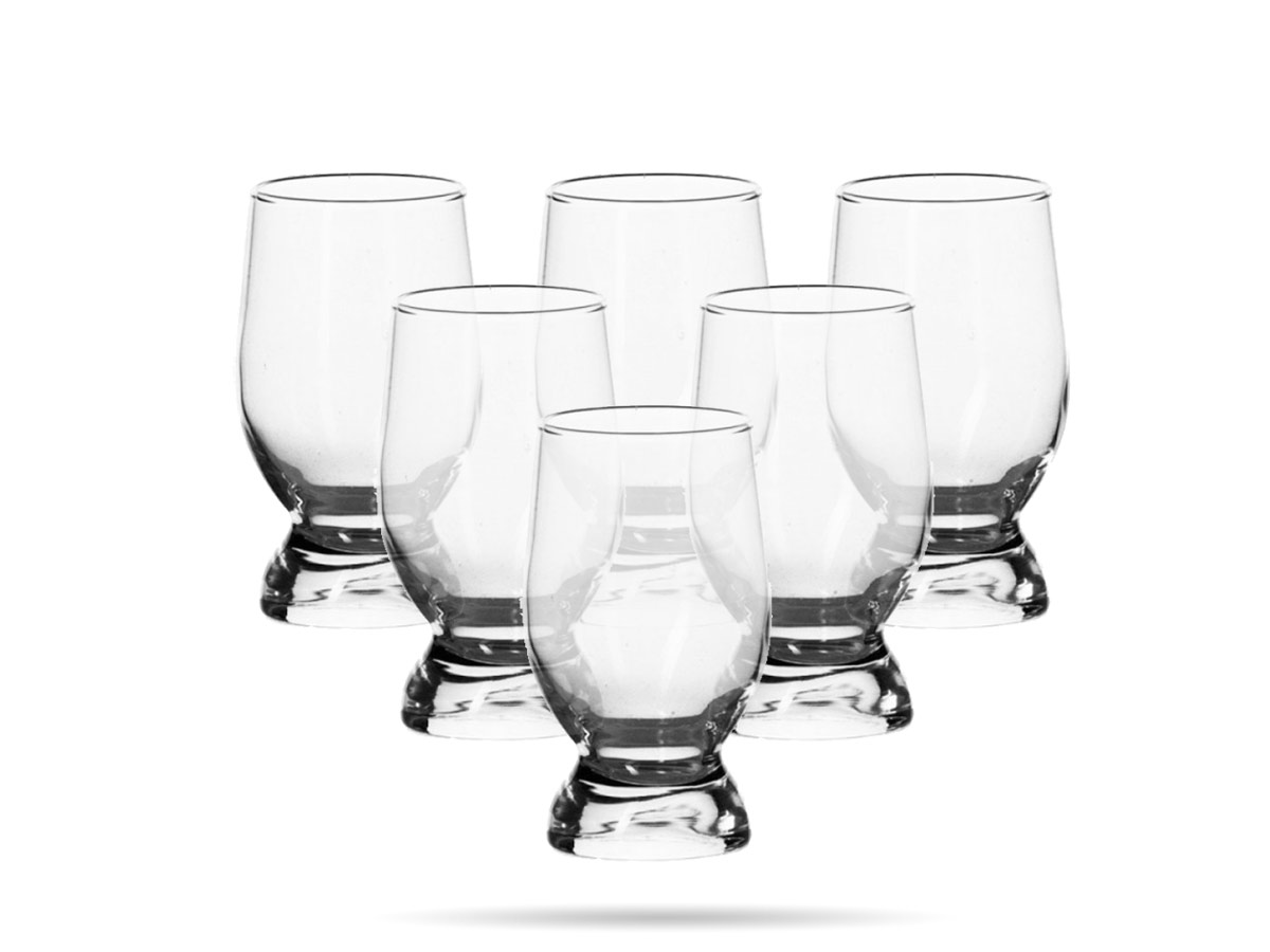 Набір з 6 високих склянок на ніжку серіїAquatic ємністю 265 мл від Pasabahce. Зручний, встановлений на товста стопа, що робить їх стійкими і ефектно виглядають. Тут можна подати алкоголь, соки або воду. Келихи для води підходять як для пабу, так і для домашнього використання.