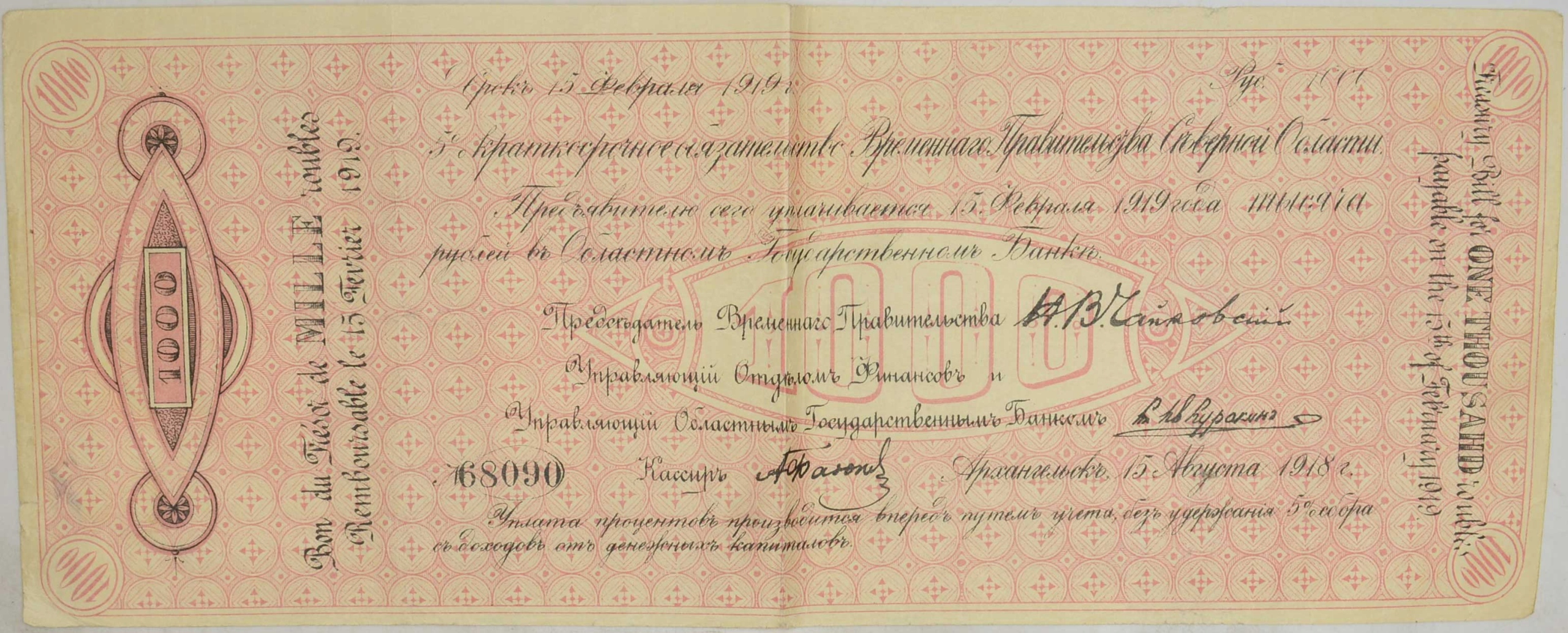 6.db.Archangielsk , 1000 рублів 1918 р. рідкісний, ст.3+