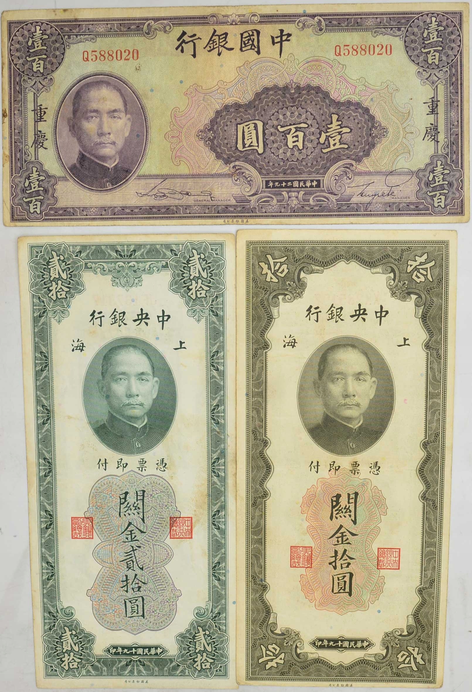 - Опис: У набір входять банкноти номіналом: 5 Митні одиниці, 20 митних одиниць 1930 р., чанкінг - 100 юанів 1940 р.