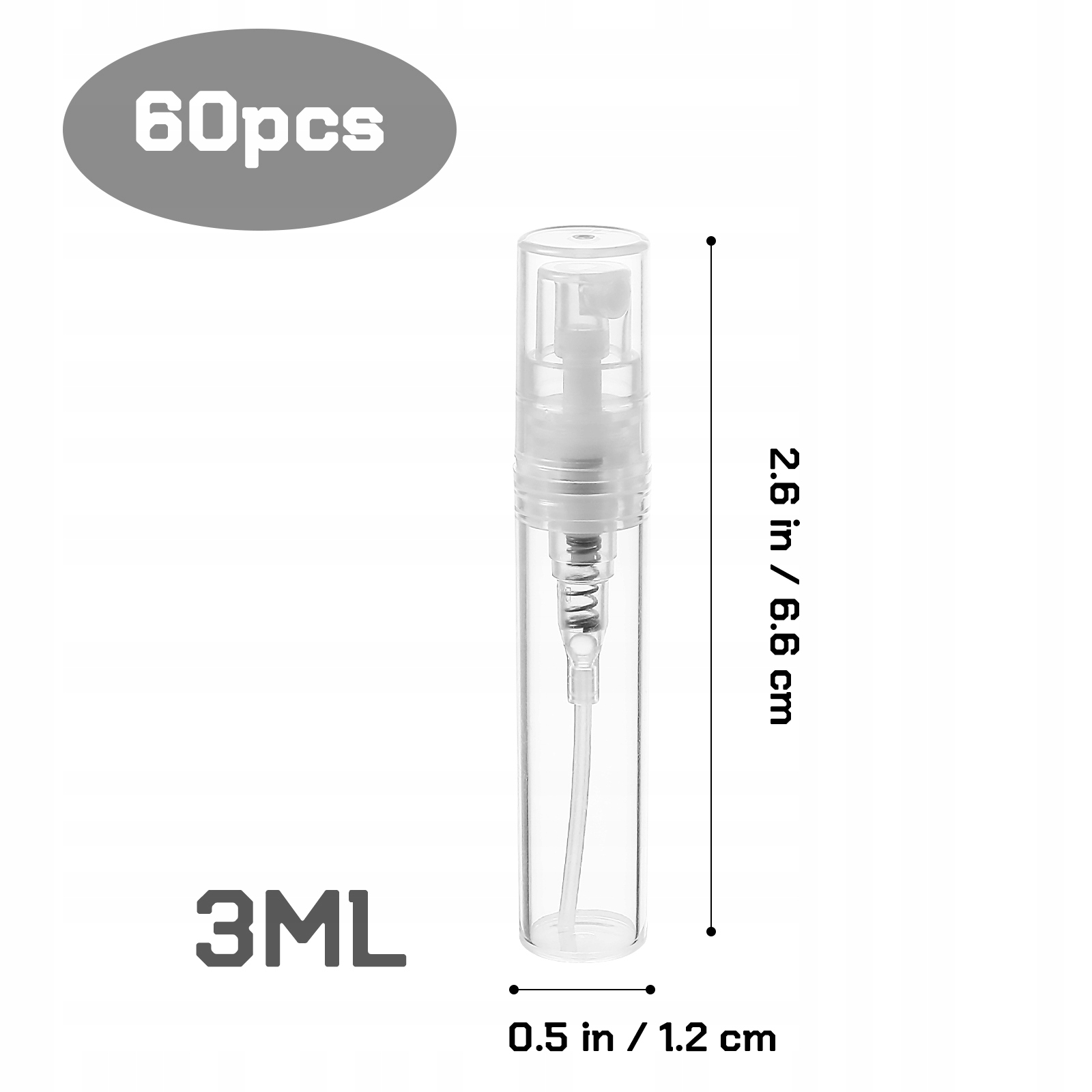 60 ШТ. ОДНОРАЗОВІ МІНІ ДОРОЖНІ ПЛЯШКИ ДЛЯ СПРЕЙ-ПАРУХІВ (3 МЛ)
