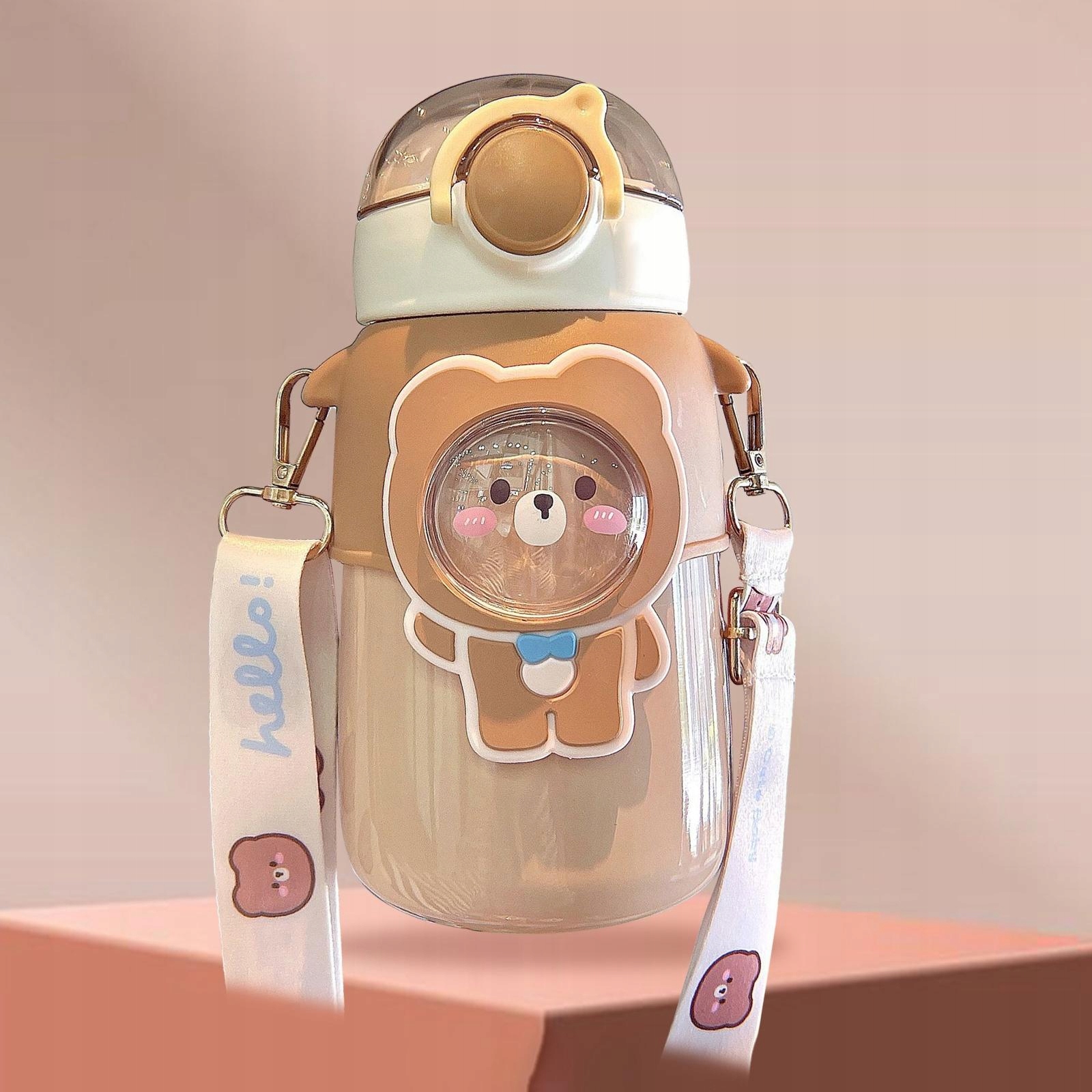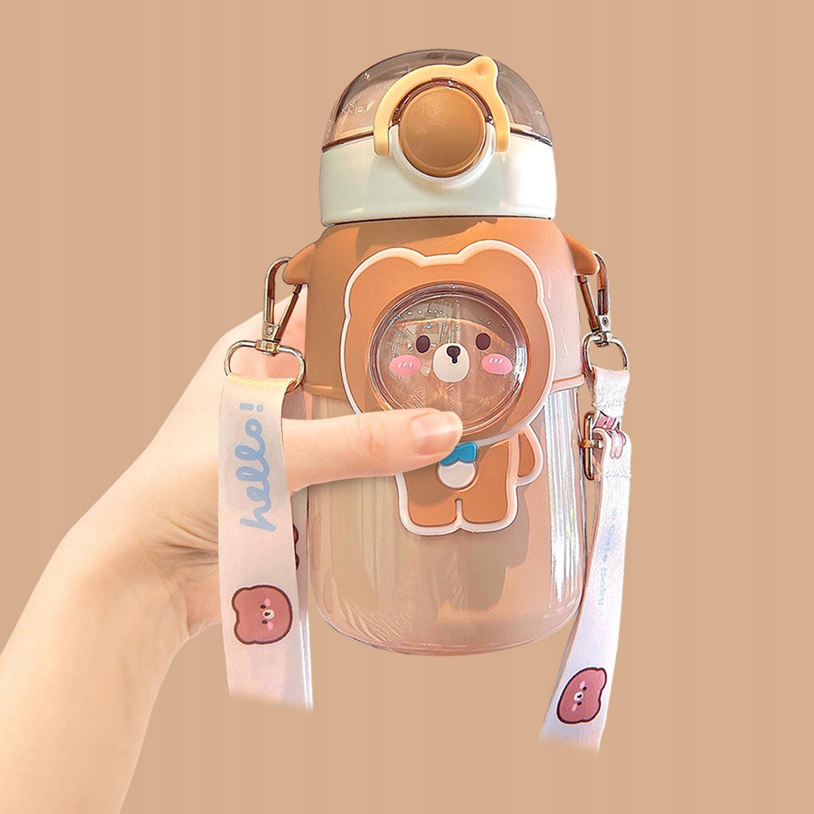 Мультяшна мода, портативний ремінь: ця пляшка з водою постачається з ремінцем, мама й дитина можуть пити разом, велика місткість, більше не потрібно виходити з двома пляшками з водою, це дозволяє тримати дитину та воду