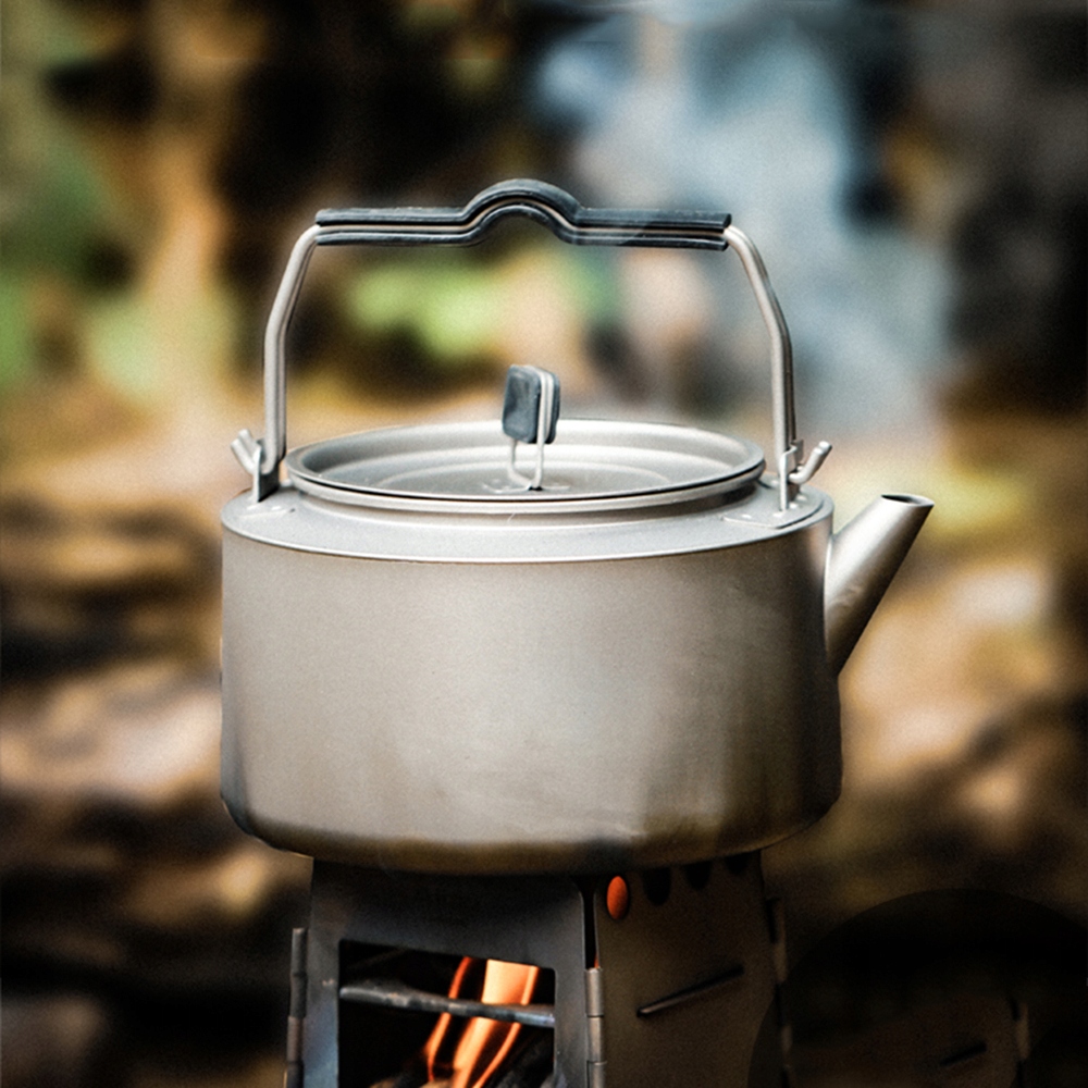 - Цей чайник виготовлено з титанового матеріалу, легкого, стійкого до корозії та здорового. Він чудово підходить для кемпінгу, походів, подорожей і домашнього використання.