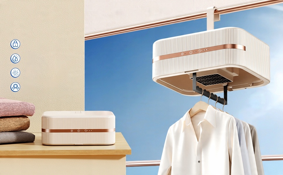 - Завдяки використанню вдосконаленої системи нагріву та циклу постійної температури міні-сушильна машина уникає проблем традиційних сушильних машин які пошкоджують одяг через перегрів, завдяки чому кожен предмет одягу досягає ідеальної сухості та максимального комфорту.