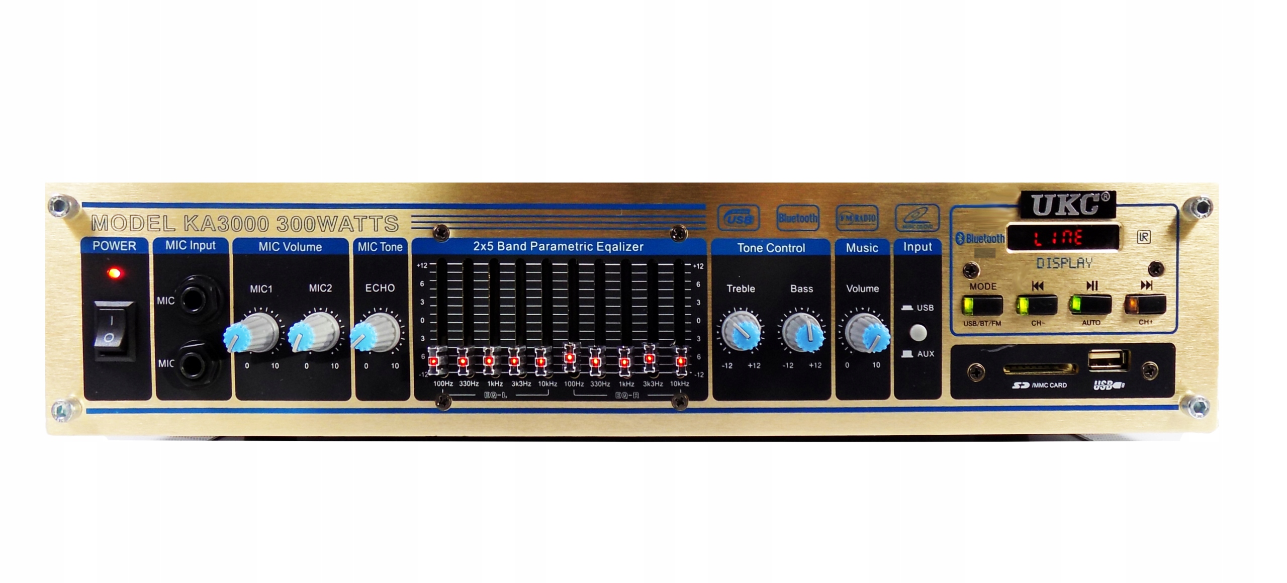 Підсилювач також має розширений еквалайзер, який дозволяє регулювати тон відтворюваного звуку. На передній панелі також є розширений мікрофонний еквалайзер.