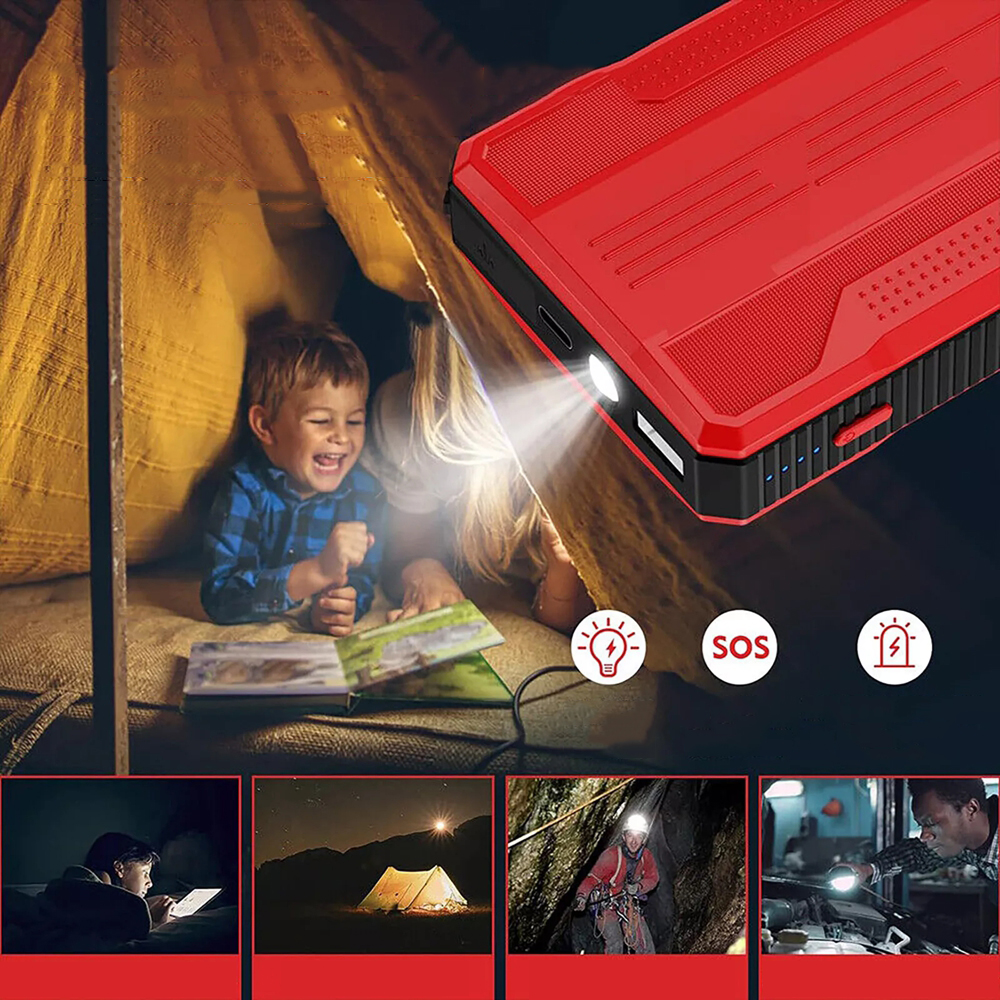 Цей стрибок має надяскравий світлодіодний ліхтарик, який підтримує 3 режими освітлення: потужний, SOS, стробоскоп, ідеально підходить для нічного ремонту автомобіля чи походів, забезпечуючи додаткову безпеку. Це необхідно для походів, кемпінгу та інших заходів на свіжому повітрі.