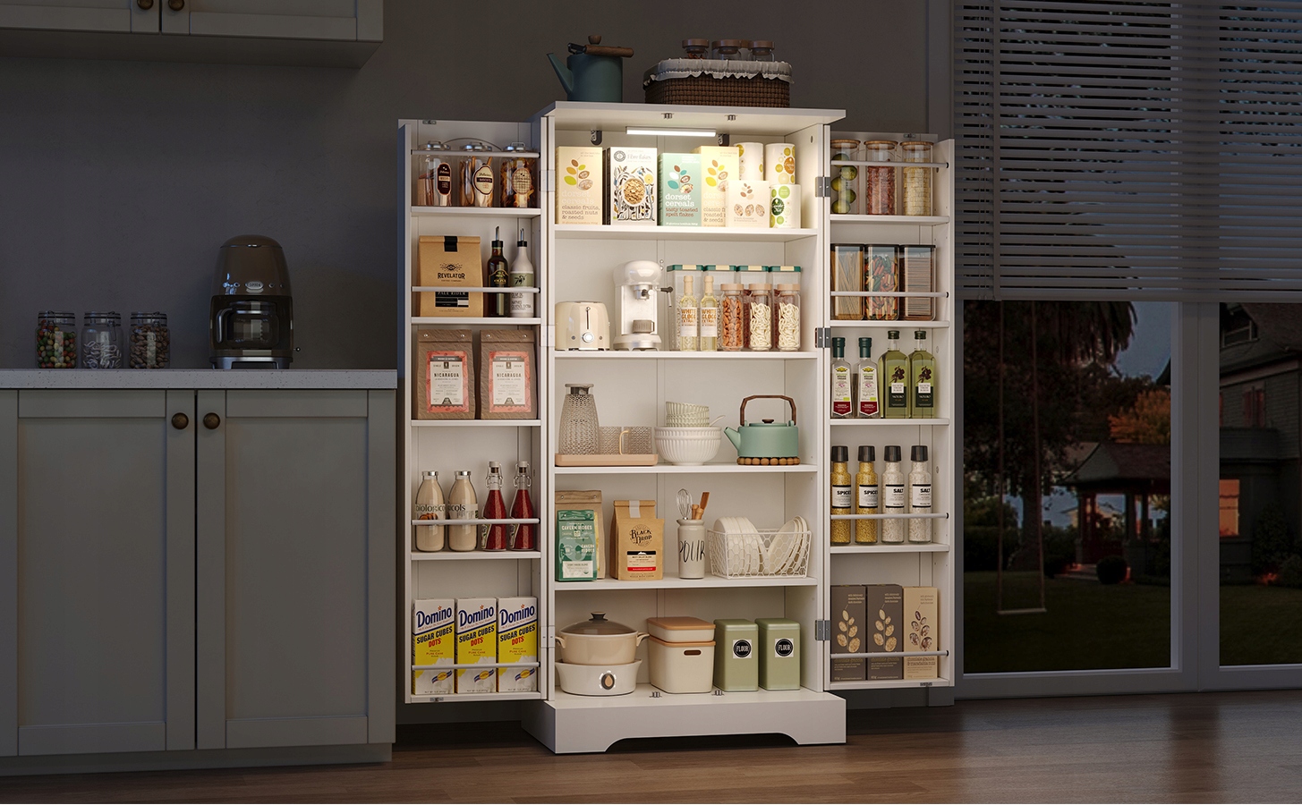 60×35×128 см, багатофункціональна кухонна шафа, LED сенсор, регульовані полиці