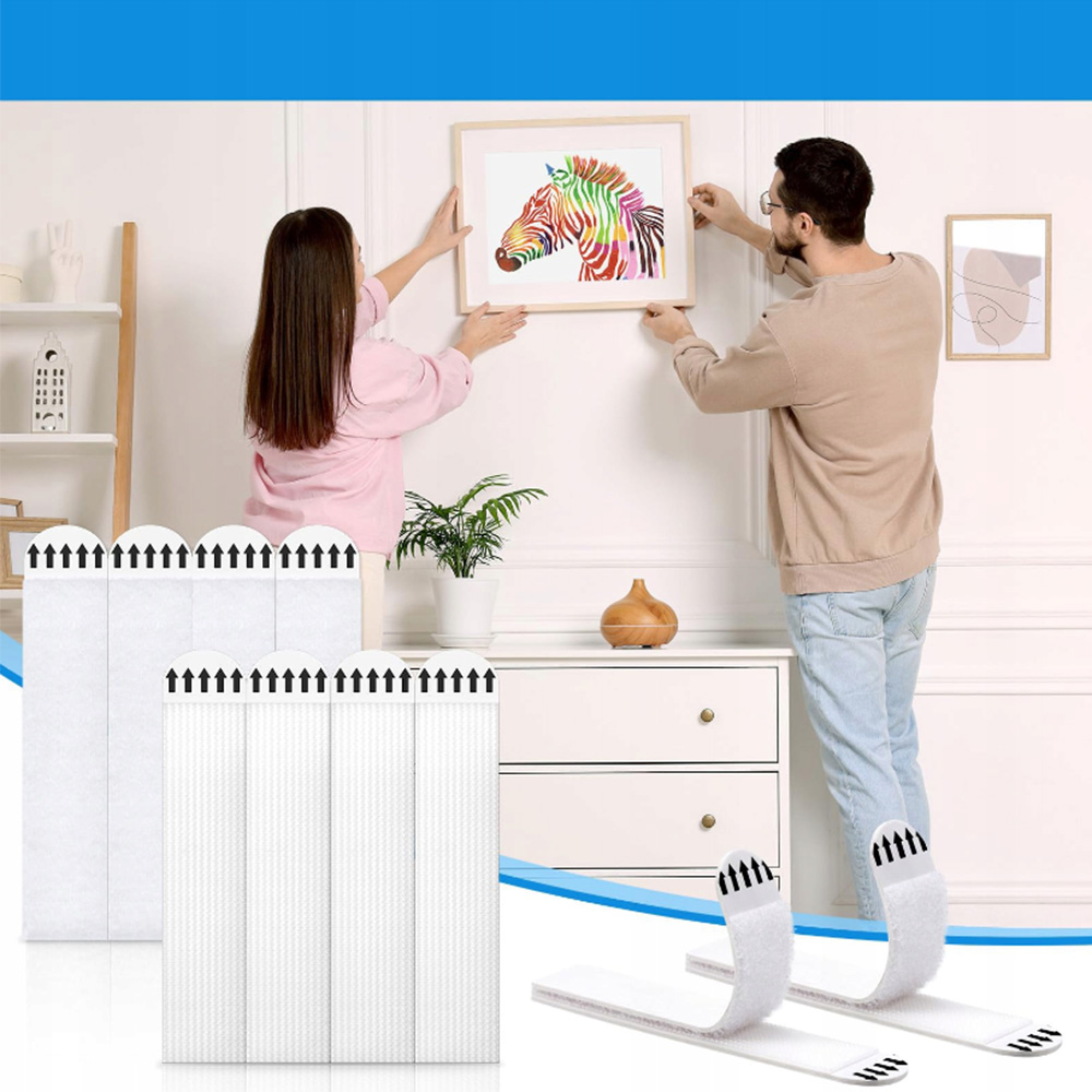 Набір смужок для підвішування картин (30 пар/60 смужок, 9,3 см х 1,9 см) може замінити цвяхи або рідкі клеї. Великі настінні смуги покриті високоякісним клеєм, порівняно зі звичайним двостороннім клеєм, з вищою адгезією. Чотири пари самоклеючих настінних смужок (вісім смужок) витримують 16 фунтів, ідеально підходять для фотографій, творів мистецтва чи святкових прикрас, не пошкоджуючи вашу стіну.