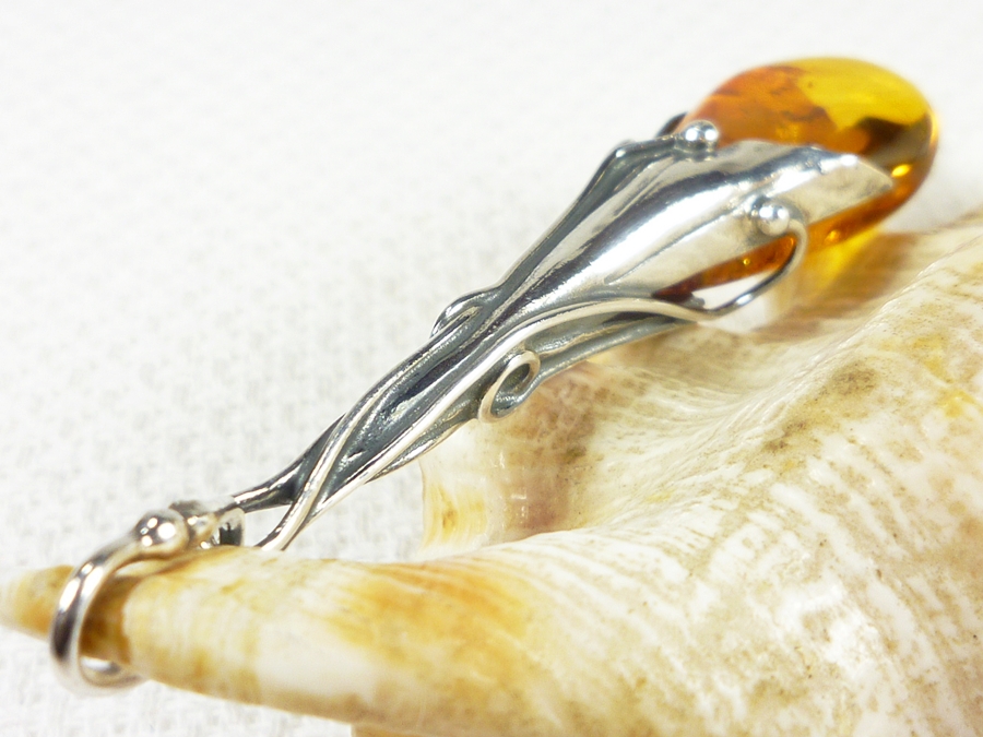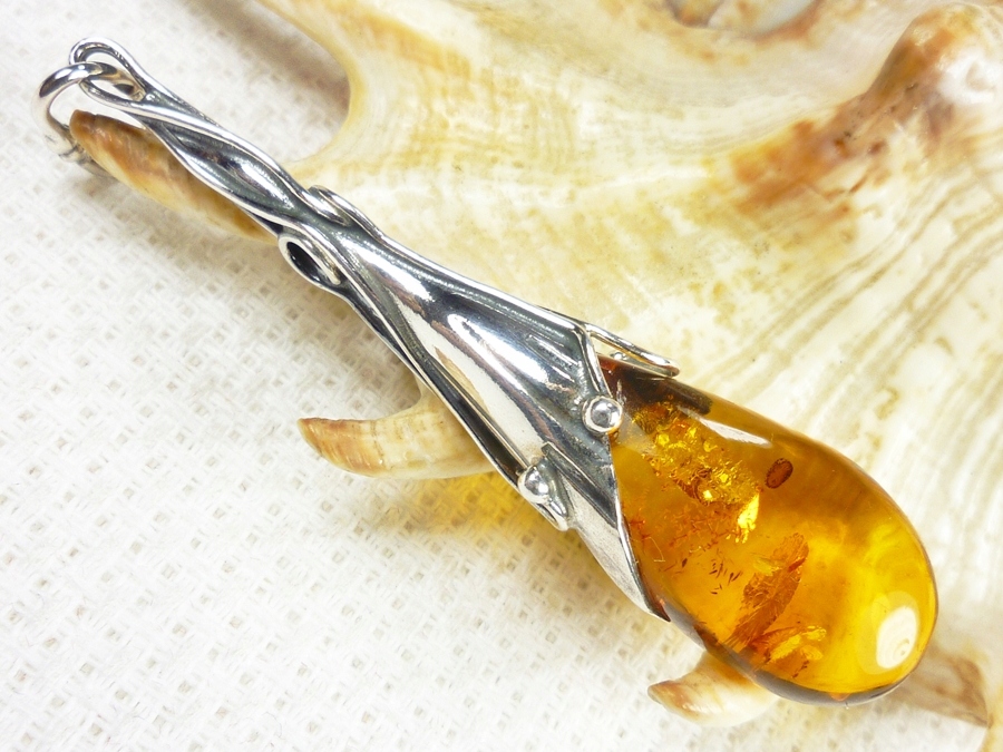 610-107 Wisiorek Srebro z Bursztynem -HAND MADE-