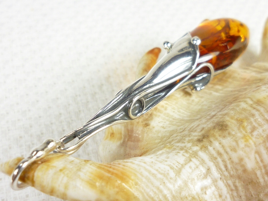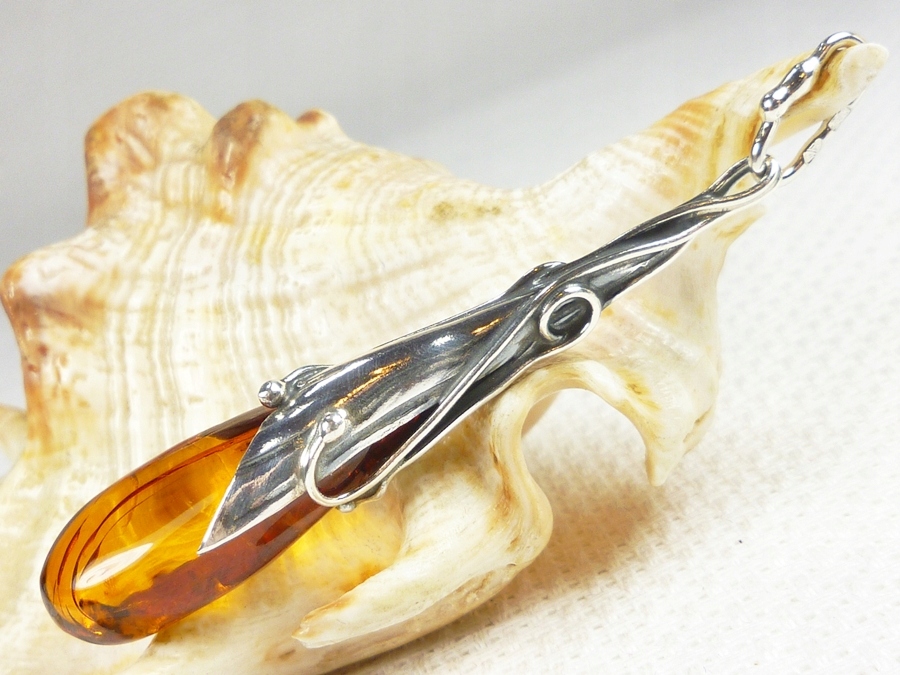 610-111 Wisiorek Srebro z Bursztynem -HAND MADE-