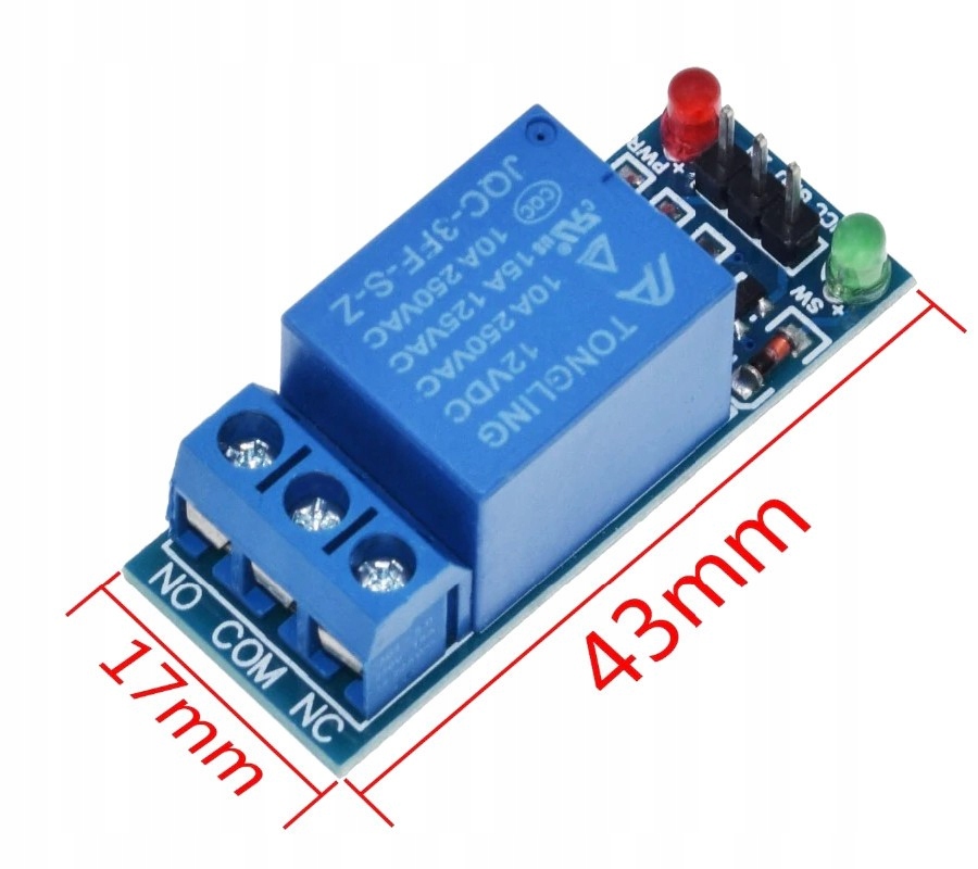 ✔️ Модуль дозволяє керувати виконавчими механізмами, які споживають струм до 10 А за допомогою портів мікроконтролера або будь-якого контролера. Модуль оснащений реле з котушкою живлення 12В.