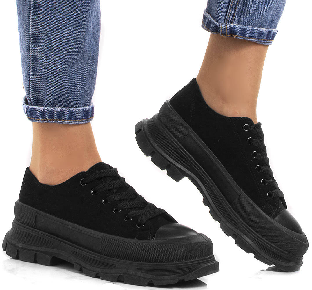 6256 ЧОРНІ НИЗЬКІ ЗАМШЕВІ КРОСІВКИ НА ПЛАТФОРМІ 38