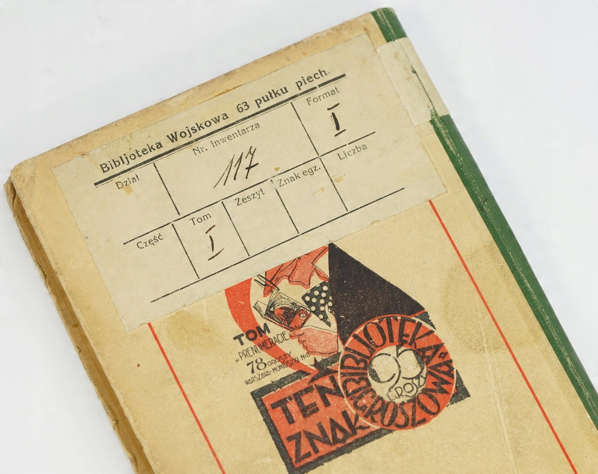Оригінальна, дуже цікава, рідкісна довоєнна публікація, 63-й полк піхоти Торунь, Військова бібліотека, примірник № 117, За зламану шию, том. 1, Adolf Dygasiński, видана Biblioteka Groszowa, Варшава близько 1930 р.; 152 сторінки, всередині численні печатки Військових бібліотек 63-го піхотного полку + інвентарна картка на звороті палітурки, тверда обкладинка, крапка, стан хороший+. Надзвичайно цікавий, дуже рідкісний предмет. Стан добре видно на фото в описі аукціону.
