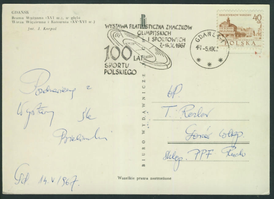67 - Гданськ 1967 етап прим. 100 років спортивної виставки Філатель zn ОЛІМПІЙСЬКИЙ СПОРТ