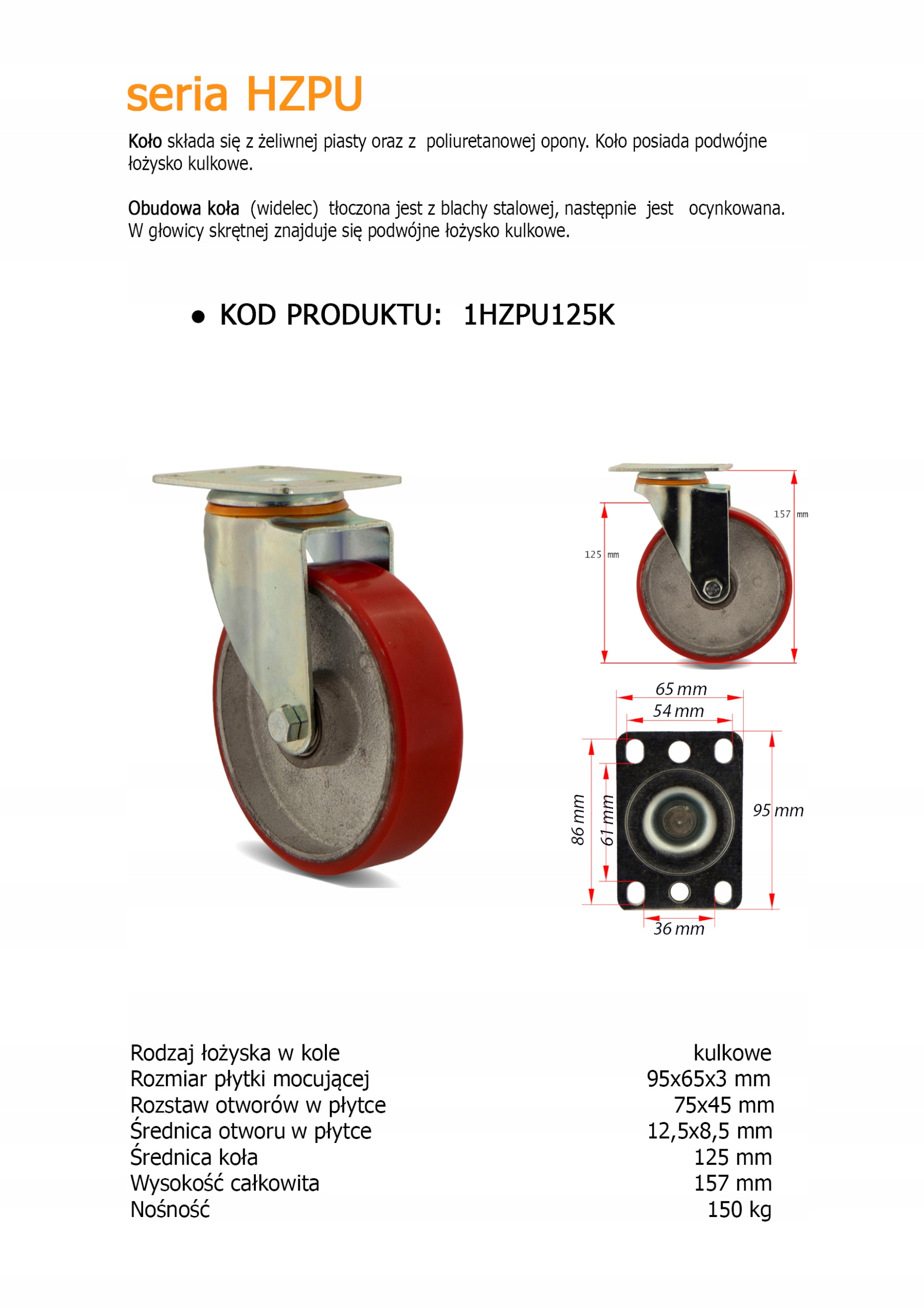 - Тип колеса: hzp , подвійний кульковий підшипник.