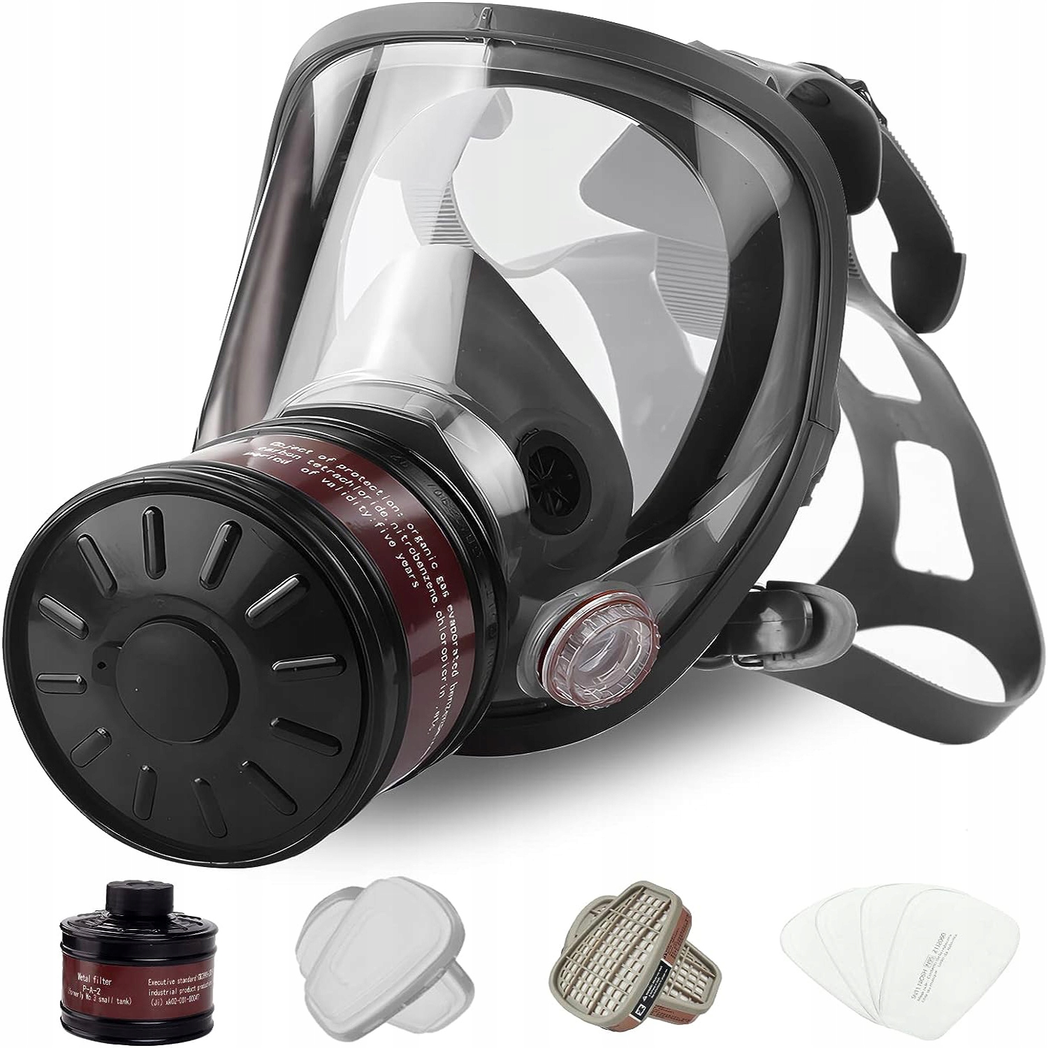 - ☑️【Два види фільтрів】: Протигаз має два типи з’єднань, а саме різьбове з’єднання 40 мм і байонетне з’єднання. Протигаз оснащений фільтром з активованого вугілля діаметром 40 мм і фільтром з активованого вугілля діаметром 6001 см. Фільтр з активованого вугілля ефективно фільтрує пил, випари, хімічні речовини тощо.