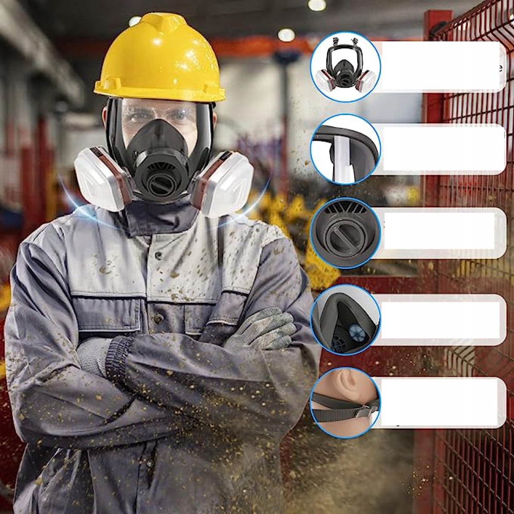 - ☑️【Ергономічний і зручний】: Протигаз виготовлений з високоякісної гуми і зручний у носінні. Регульоване наголов'я підходить для голови більшості людей. ПРИМІТКА: окуляри не можна носити з цим повнолицевим респіратором. Після використання потрібен тест на герметичність.