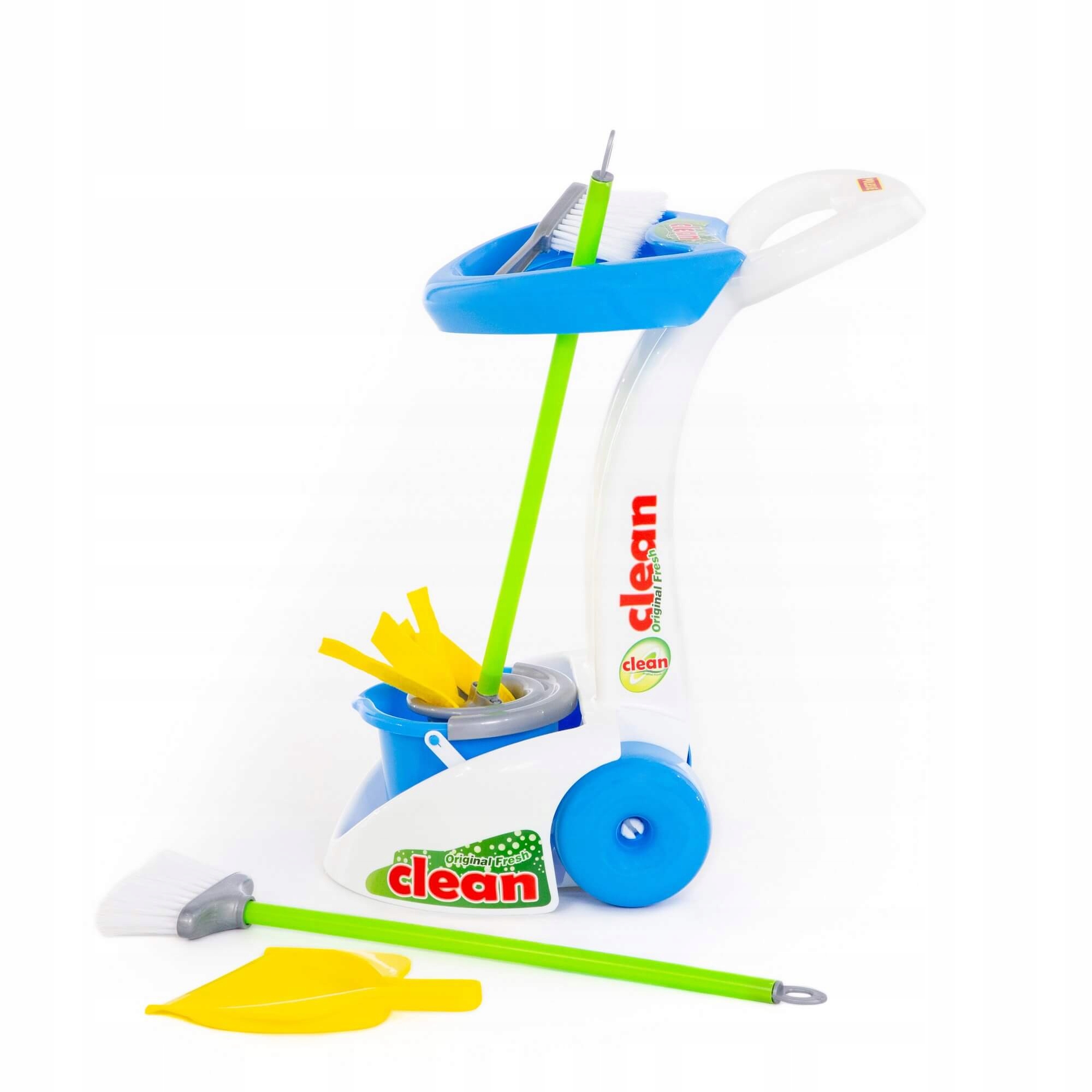 Діти люблять наслідувати дорослих під час щоденних домашніх справ. Для цього вони із задоволенням використовують необхідні інструменти, які їм допомагають, наприклад, у прибиранні. Батьки можуть заохотити своїх дітей до виконання своїх обов’язків, подарувавши їм мініатюрну техніку, яка є точною копією справжніх аксесуарів, які використовуються під час прибирання будинку. CLEANING by Polesie — набір, що складається зі швабри, великої щітки, совка та відра зі спеціальним кошиком для віджиму зайвої води. Всі елементи розміщені на спеціально розробленому візку, оснащеному двома колесами. Це полегшує зберігання та транспортування необхідних інструментів. Виріб виготовлено з високоякісних матеріалів, що гарантує довговічність і безпеку під час використання.