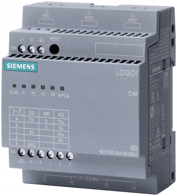 Модуль зв'язку логотипу! CIM (6ED1055-5MC08-0BA2)-це модуль розширення для логотипу Siemens! 8, що дозволяє зв’язати через мережу Ethernet. Розроблений для легкої інтеграції з системами автоматизації, це дозволяє обмінюватися даними між логотипом!, Іншими мережевими пристроями та зовнішніми серверами.