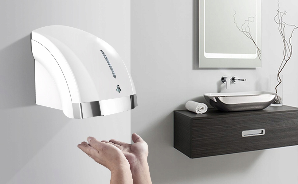 оснащена вентиляційною карткою, ефективним зменшенням шуму до 40 дБ. Висока швидкість сушіння (протягом 15 секунд), швидка реакція (приблизно 0,25 секунди), 3-5 дюймів діапазон виявлення забезпечує більшу чутливість, ніж традиційні електричні сушарки для рук;