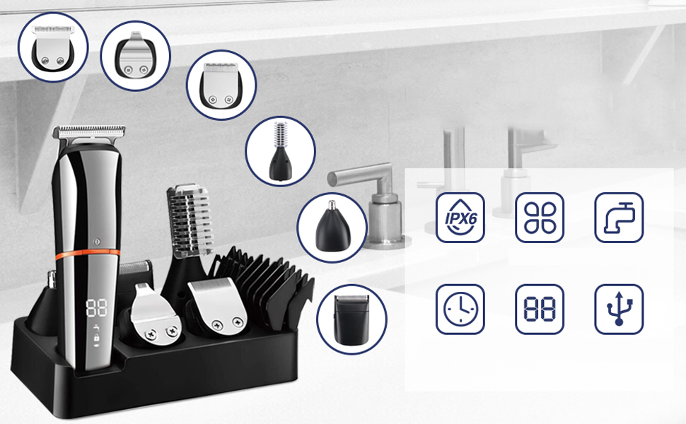 - Водонепроникний дозатор рідини IPX6 IPX6 із знімними шпателями допомагає вам використовувати його та очистити за допомогою пензля. Тример бороди водонепроникний, тому ви можете використовувати його під душем.