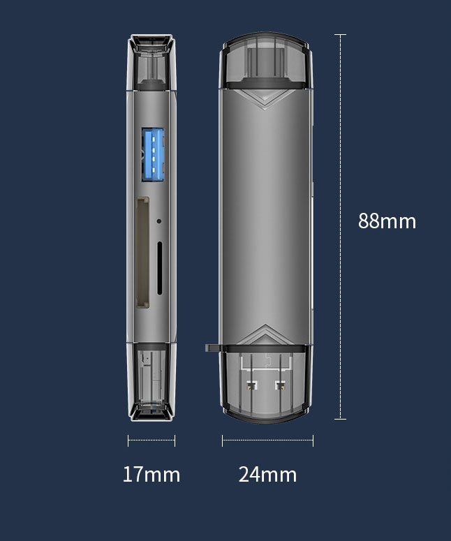✨ usb3.0 зчитувач карт із портом USB, Micro-USB-портом та типом C порт, завдяки якому зчитувач картки сумісний з таблетками та смартфонами, які підтримують функцію OTG.